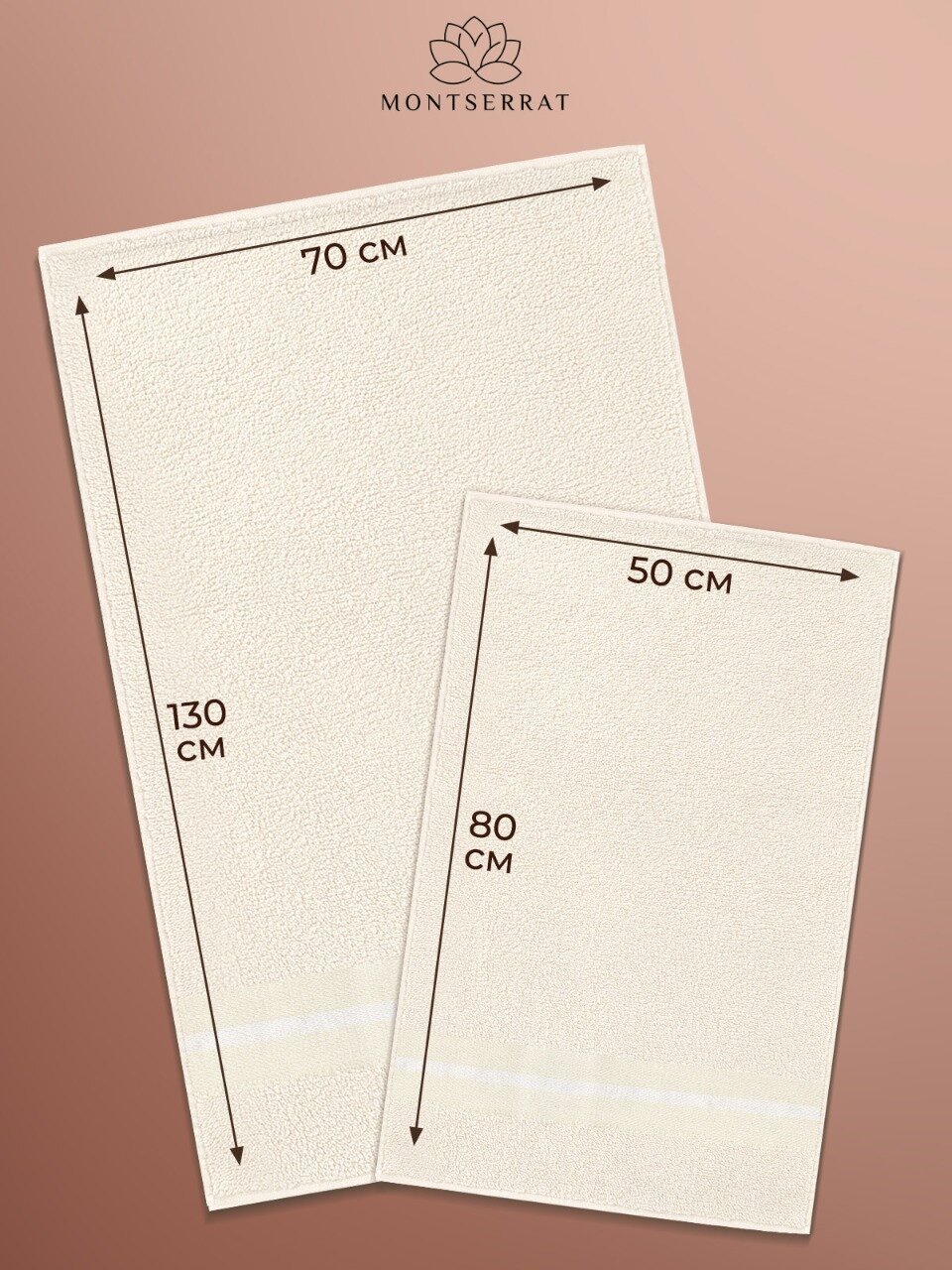 Полотенце махровое банное Montserrat комплект в ванную для лица, рук и тела, Набор 2 шт - 50х80 и 2 - 70х130 см, бежевые