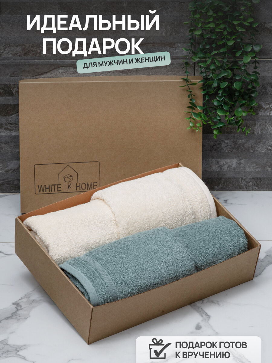 Набор средних махровых полотенец 2 шт; зеленое, молочное; для рук 50х90; хлопок Турция, в подарочной коробке интересное: