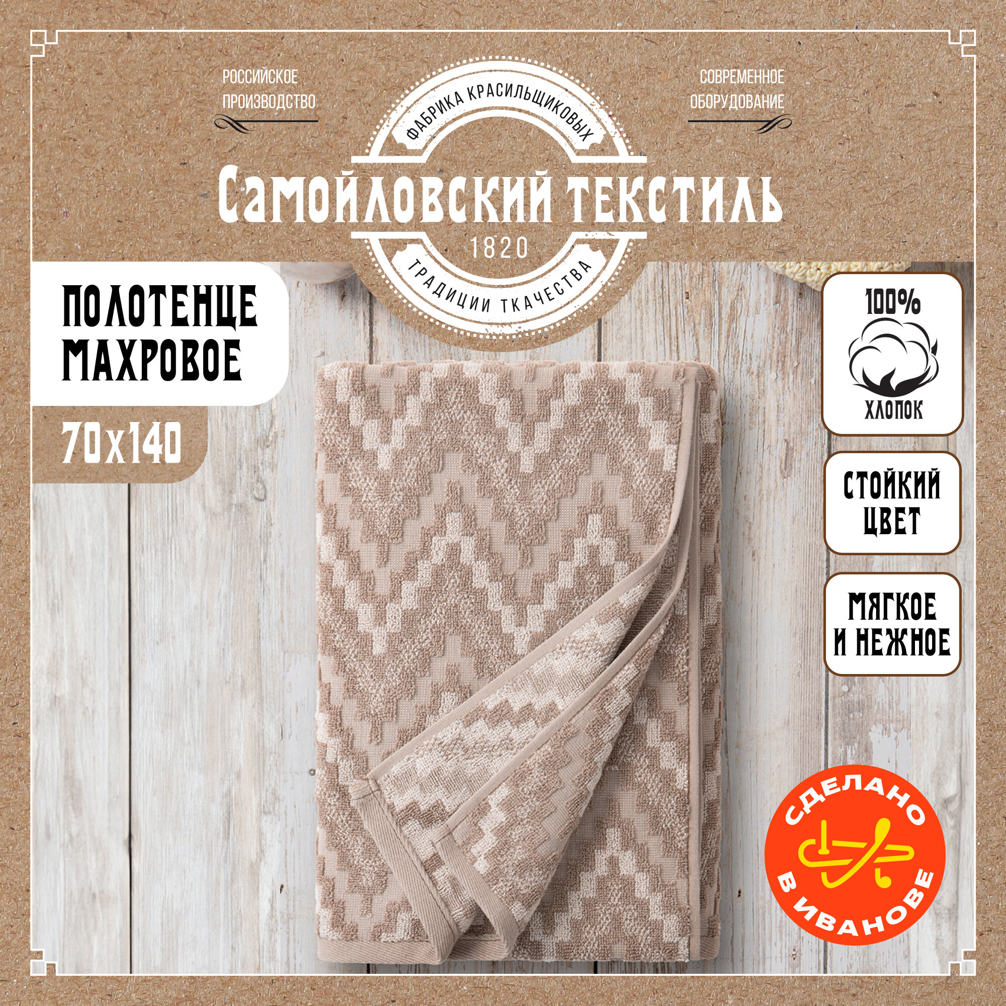 Полотенце банное махровое 70х140 см Самойловский текстиль, хлопок 100%, плотность 420 г/м2 интересное: