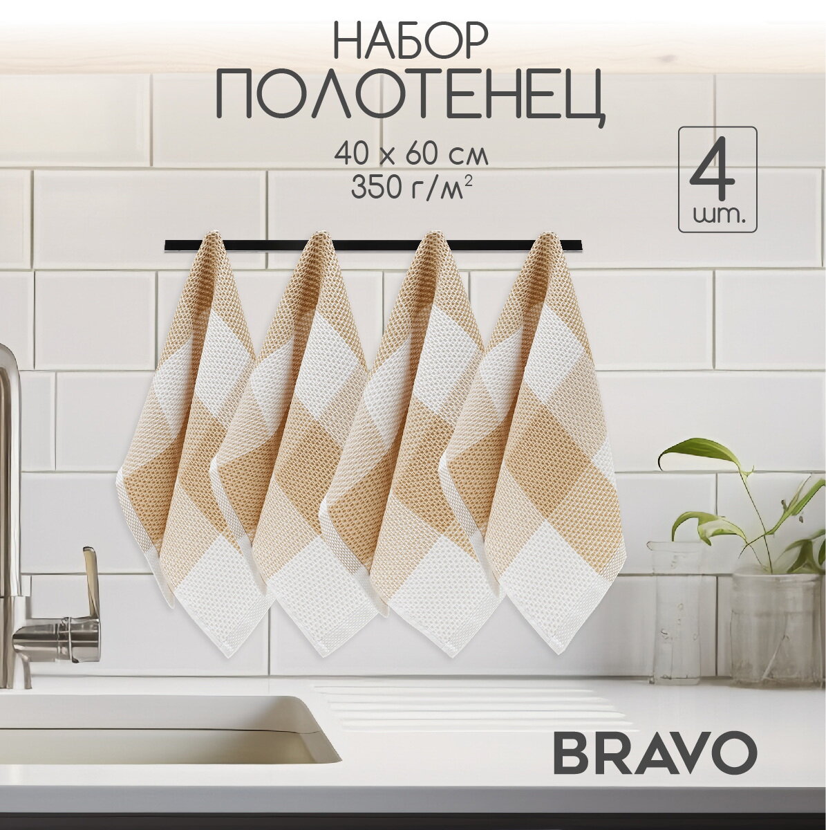 Купить Набор вафельных полотенец BRAVO 4 шт. с петелькой /аналог ИКЕЯ/размер 40*60 см / подарок/ для кухни/ бежевый