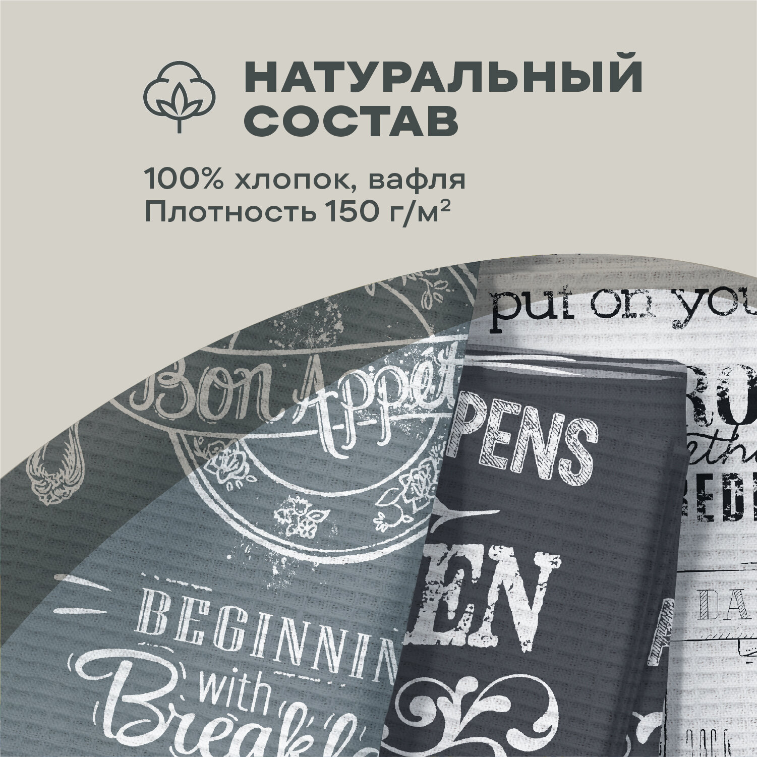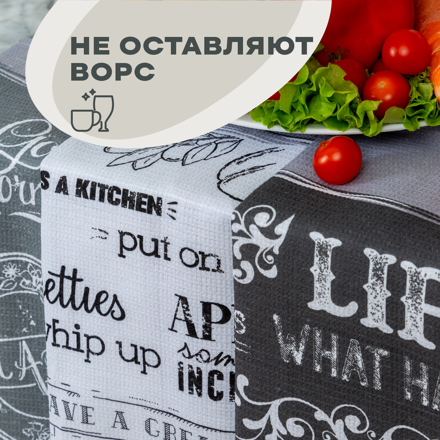 Кухонные полотенца 3 шт 45х60 Унисон рис 33069-1 Loft Cafe интересное: