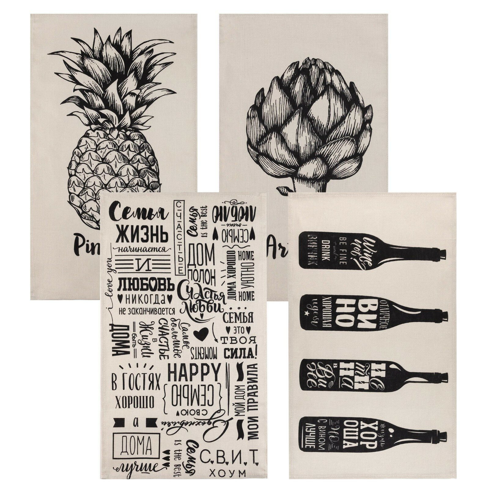 СохранитьПолотенце кухонное 4 штуки, 35х60, Доляна "Семейное счастье" 100% хлопок интересное: