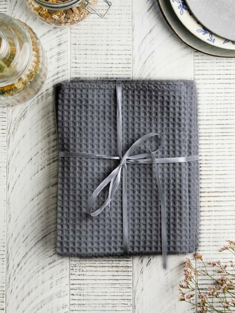 Кухонные вафельные полотенца, набор полотенец с петелькой, однотонные, декоративные, для кухни дачи, посуды, цвет темно серый, 3 штуки 45х60