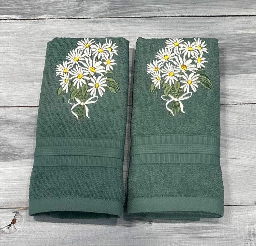 Набор полотенец Домашняя коллекция "Ромашка", с вышивкой, 2шт, хлопок, зеленый, махровые интересное: