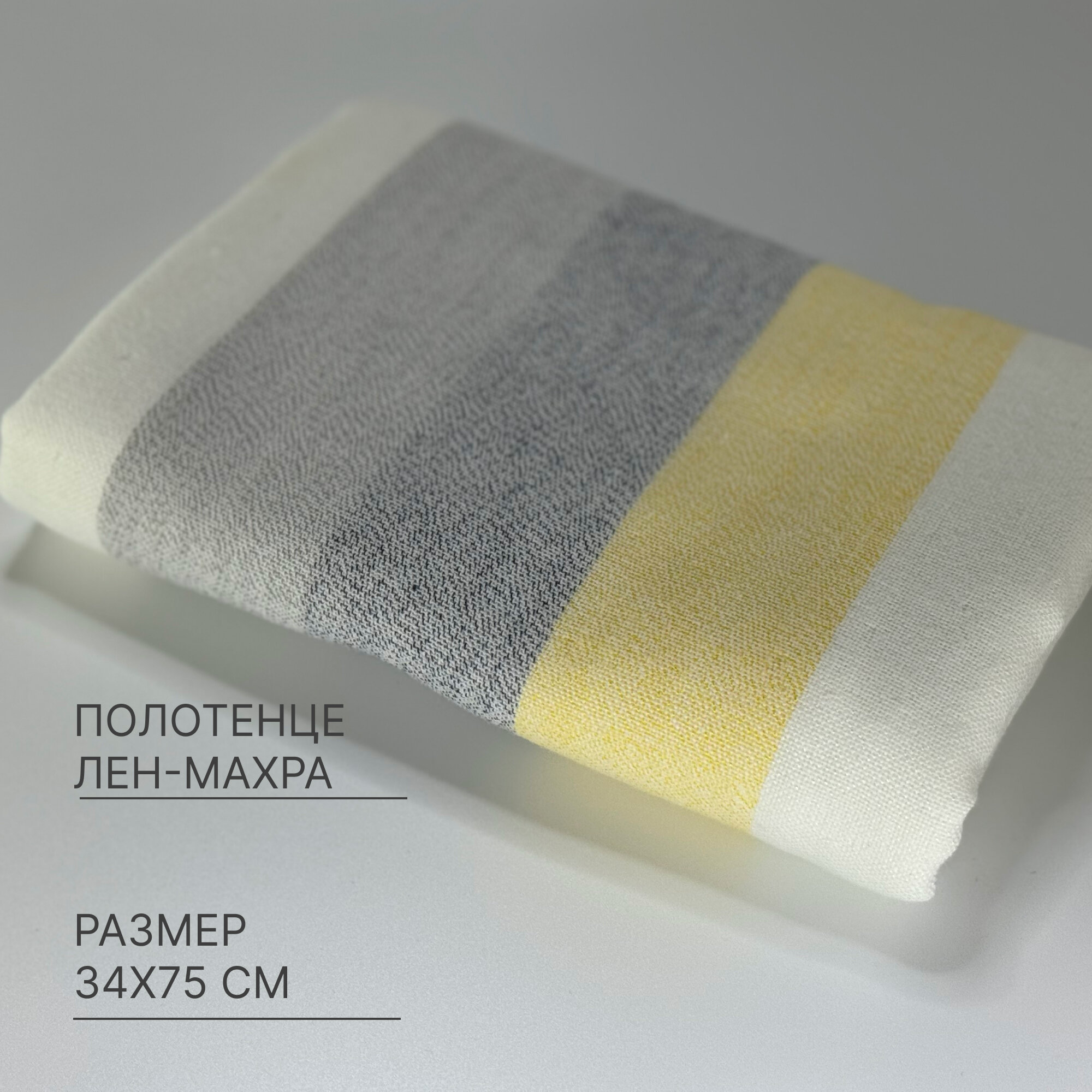 Полотенце "Желтая полоска" 34х75 см, лен+махра, 1 штука интересное: