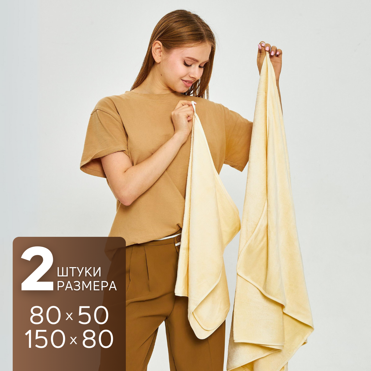 Набор банных полотенец MAOMIKO, 2 штуки, микрофибра, 150x80 см/80x50 см, коричневый