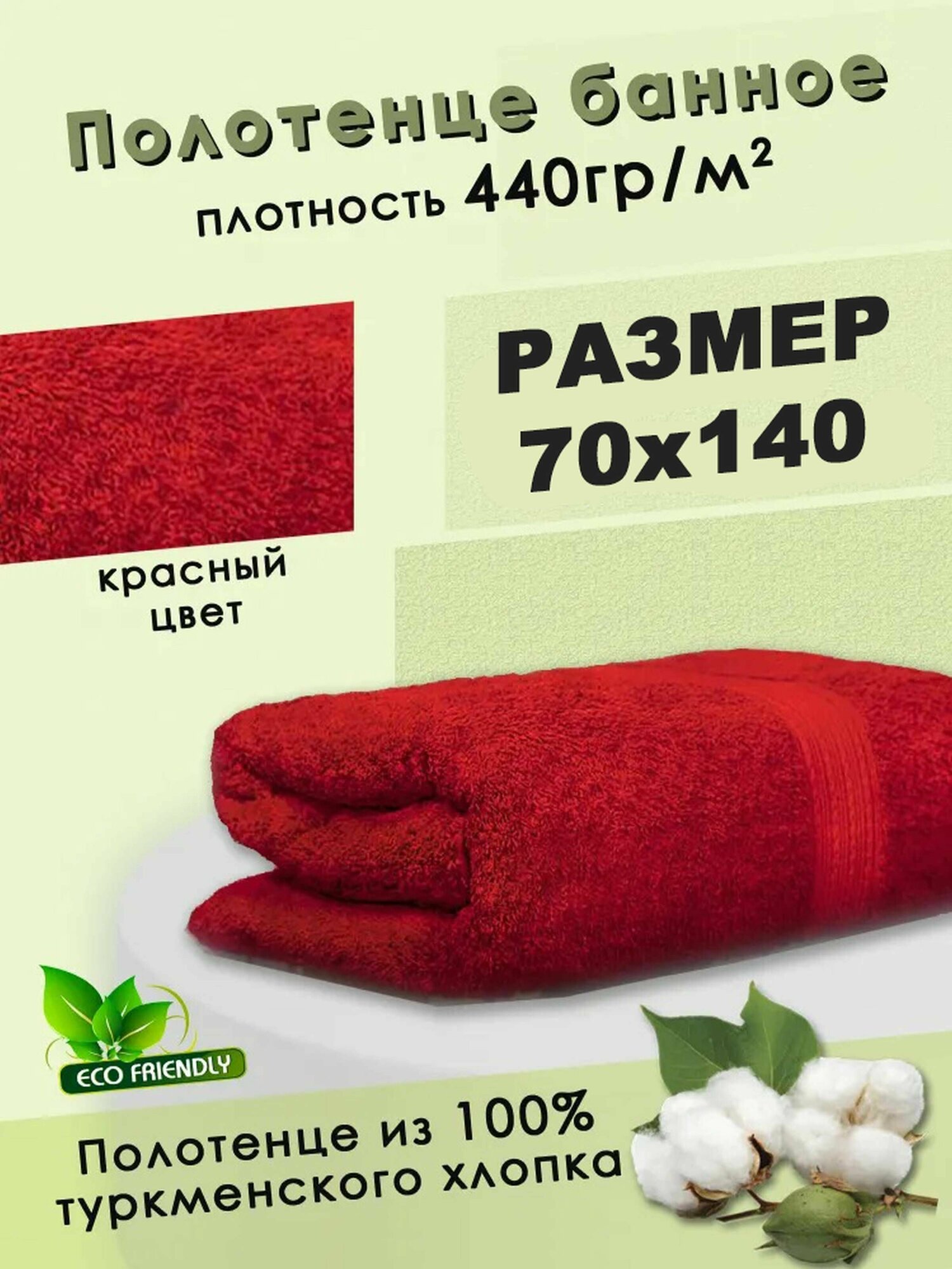 Полотенце банное махровое большое 70х140 см, 100% хлопок, красное интересное: