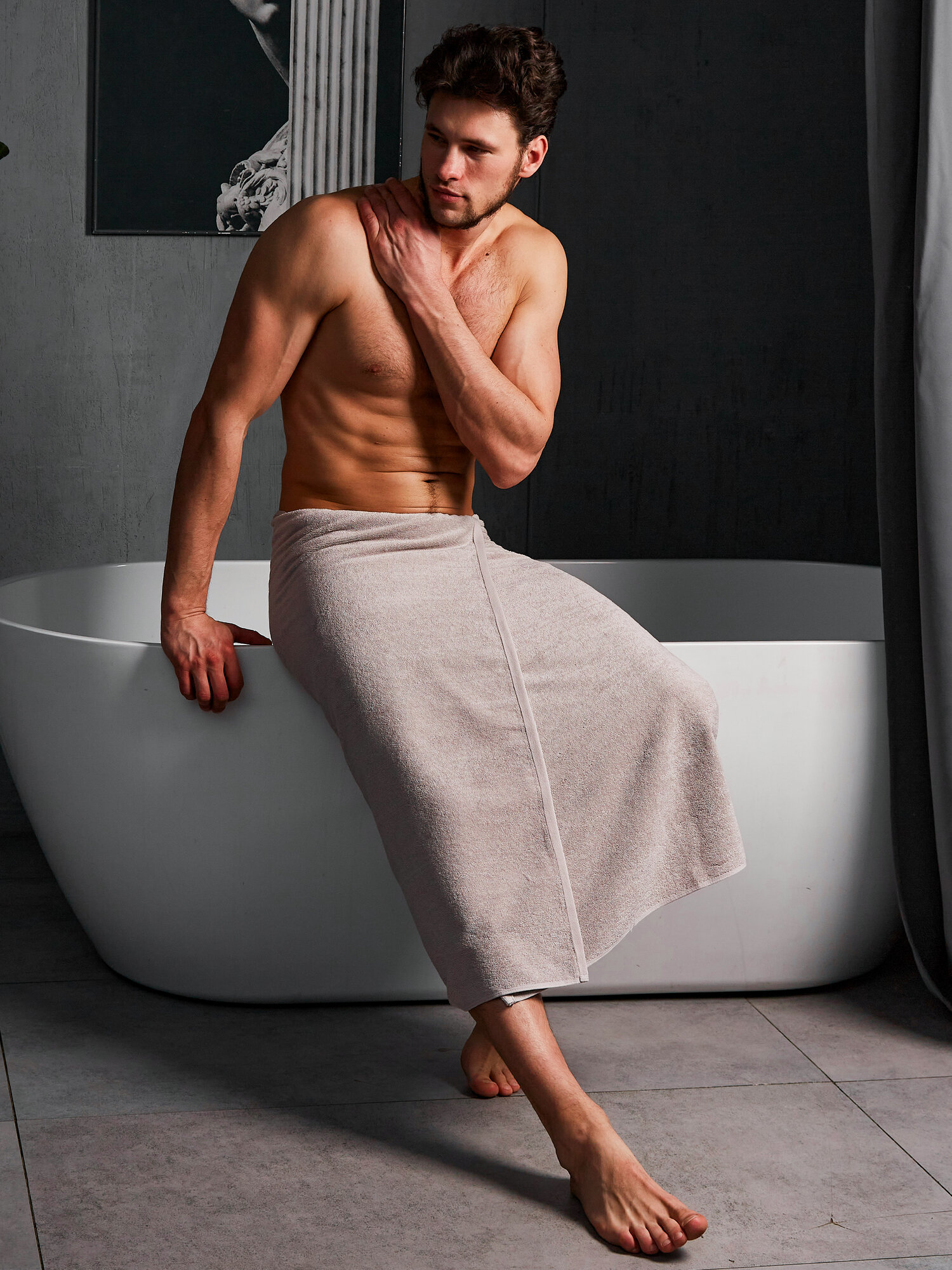Полотенце банное махровое 90х150 PATRIK SAYLI (100%Хлопок); (серый); (500 гр.) HOTEL интересное: