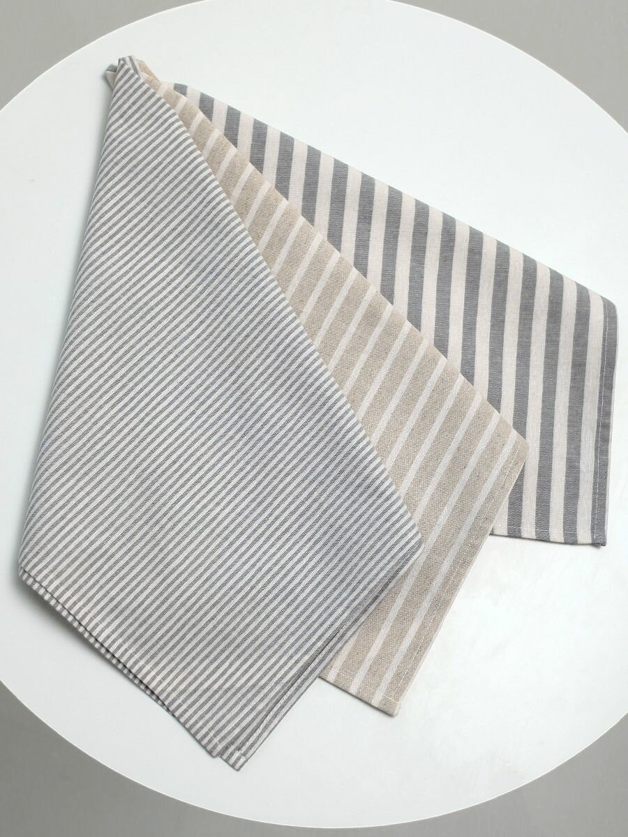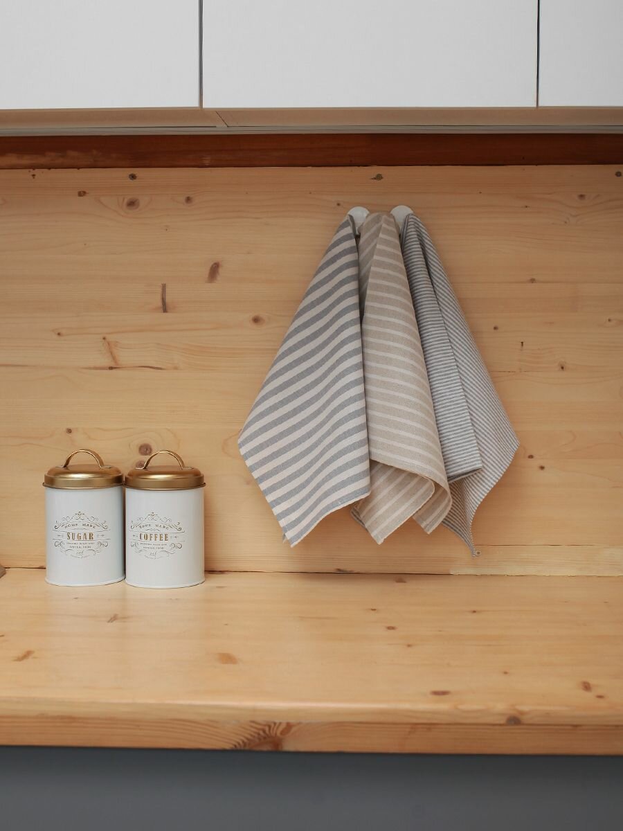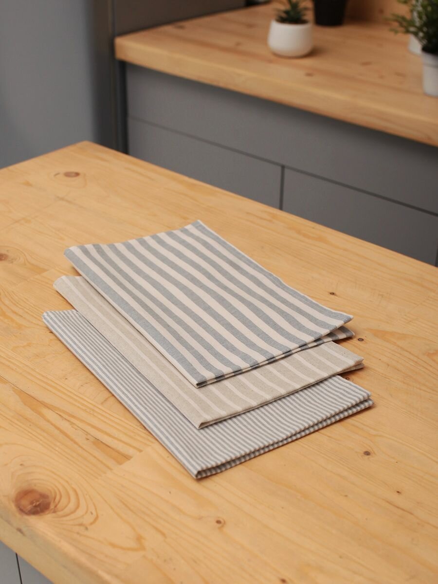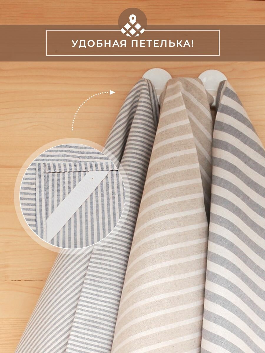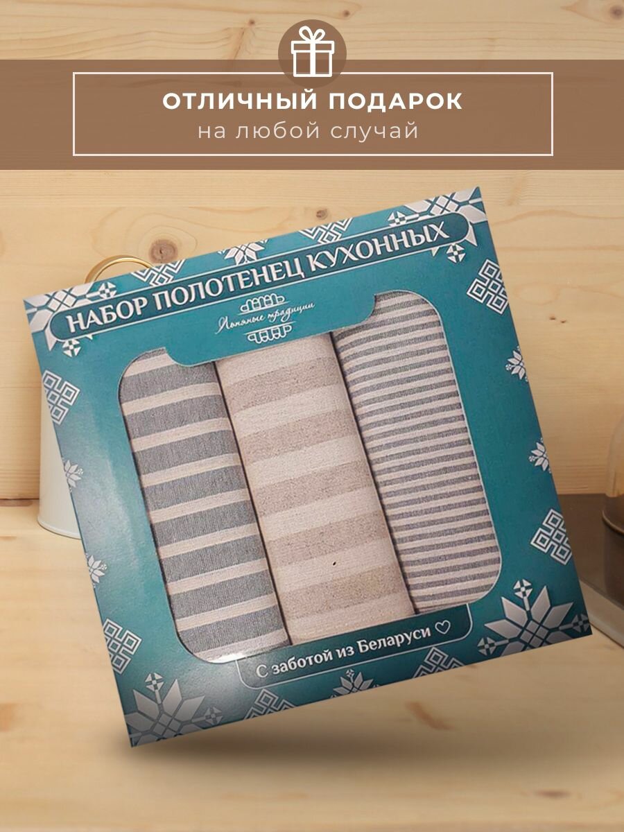 Полотенца для кухни Льняные традиции 40х60, Набор 3 шт, Лен + Хлопок, с петелькой в полоску кухонные для посуды и рук универсальные интересное: