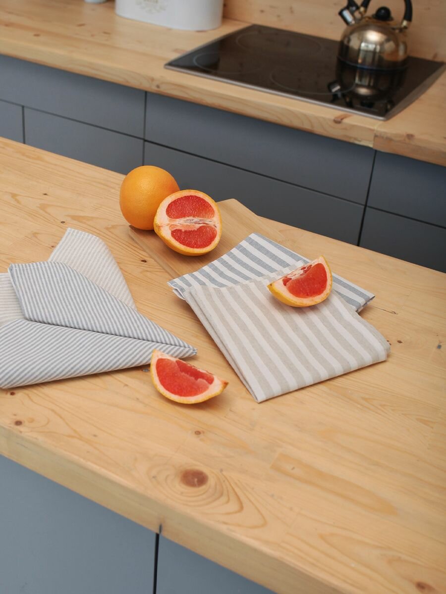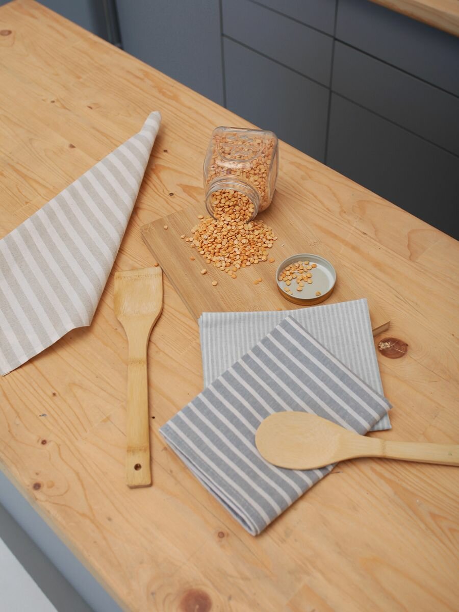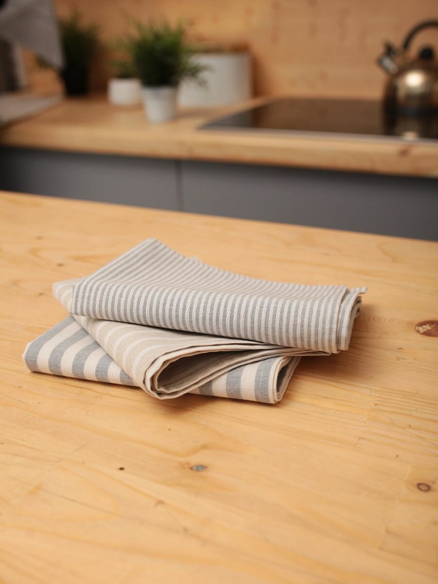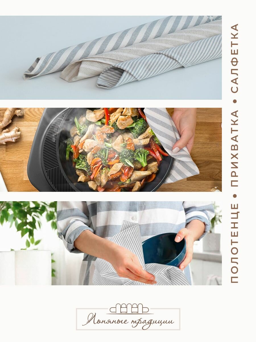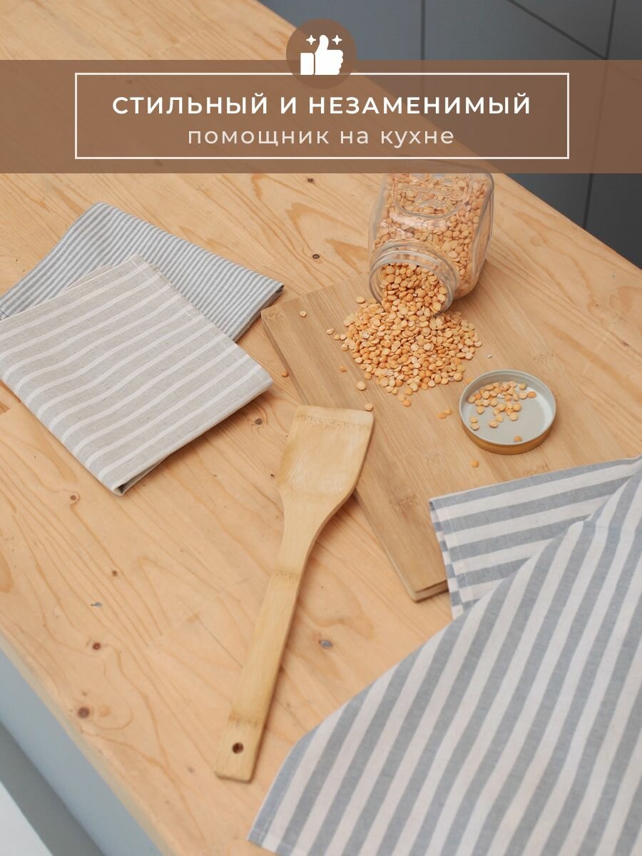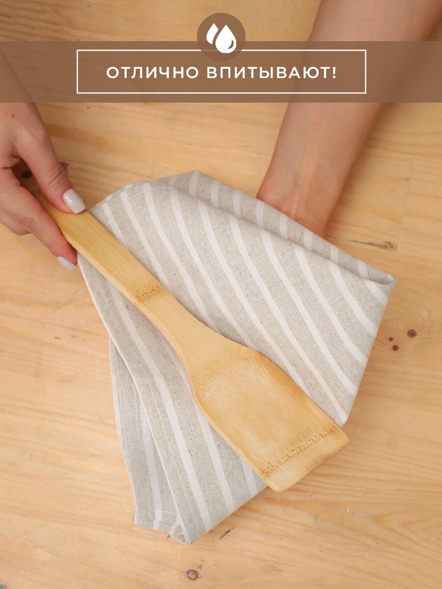Полотенца для кухни Льняные традиции 40х60, Набор 3 шт, Лен + Хлопок, с петелькой в полоску кухонные для посуды и рук универсальные интересное: