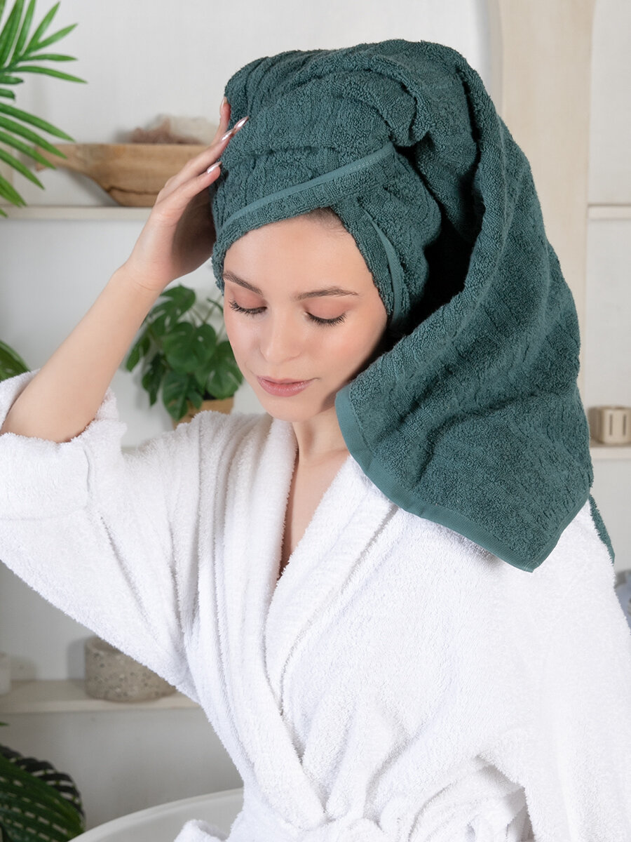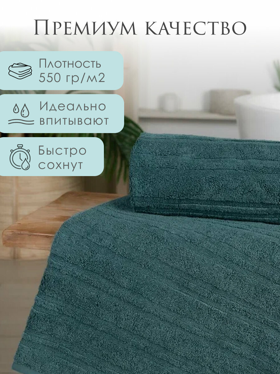 Купить Полотенце банное махровое, набор 2 шт. для тела лица 70х140, 50х90 см, хлопок 550 гр/м, темно-зеленый