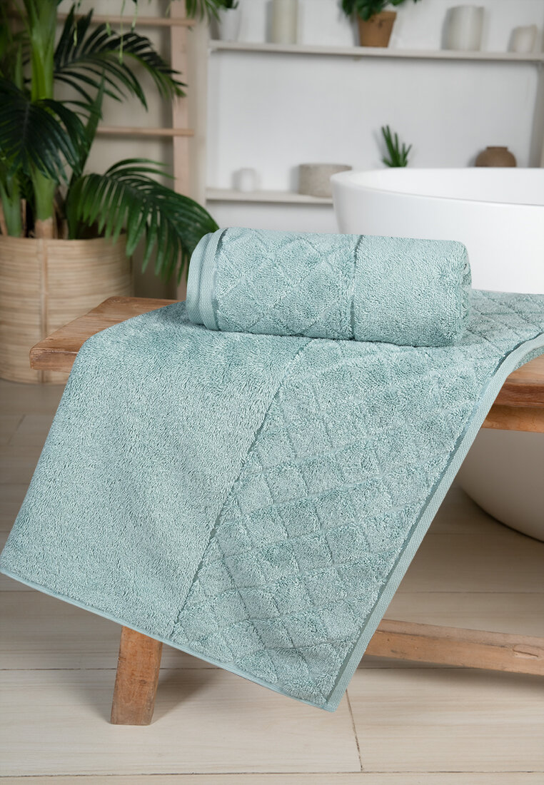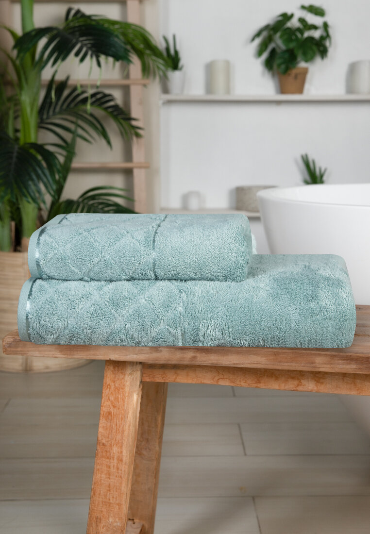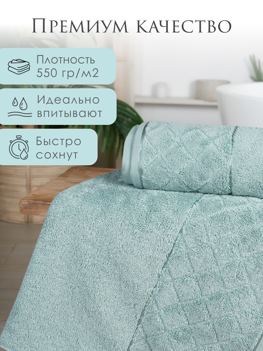 Купить Полотенце банное махровое, набор 2 шт. для тела лица 70х140, 50х90 см бамбук 550 гр/м, мятный