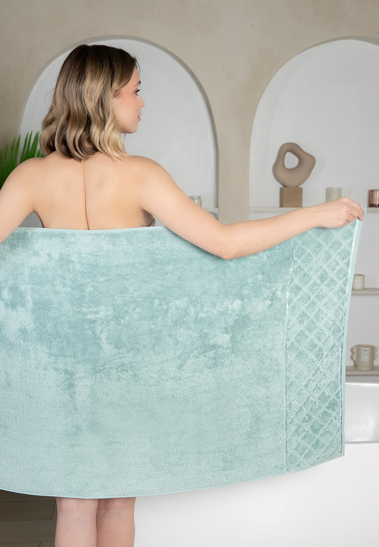 СохранитьПолотенце банное махровое, набор 2 шт. для тела лица 70х140, 50х90 см бамбук 550 гр/м, мятный интересное: