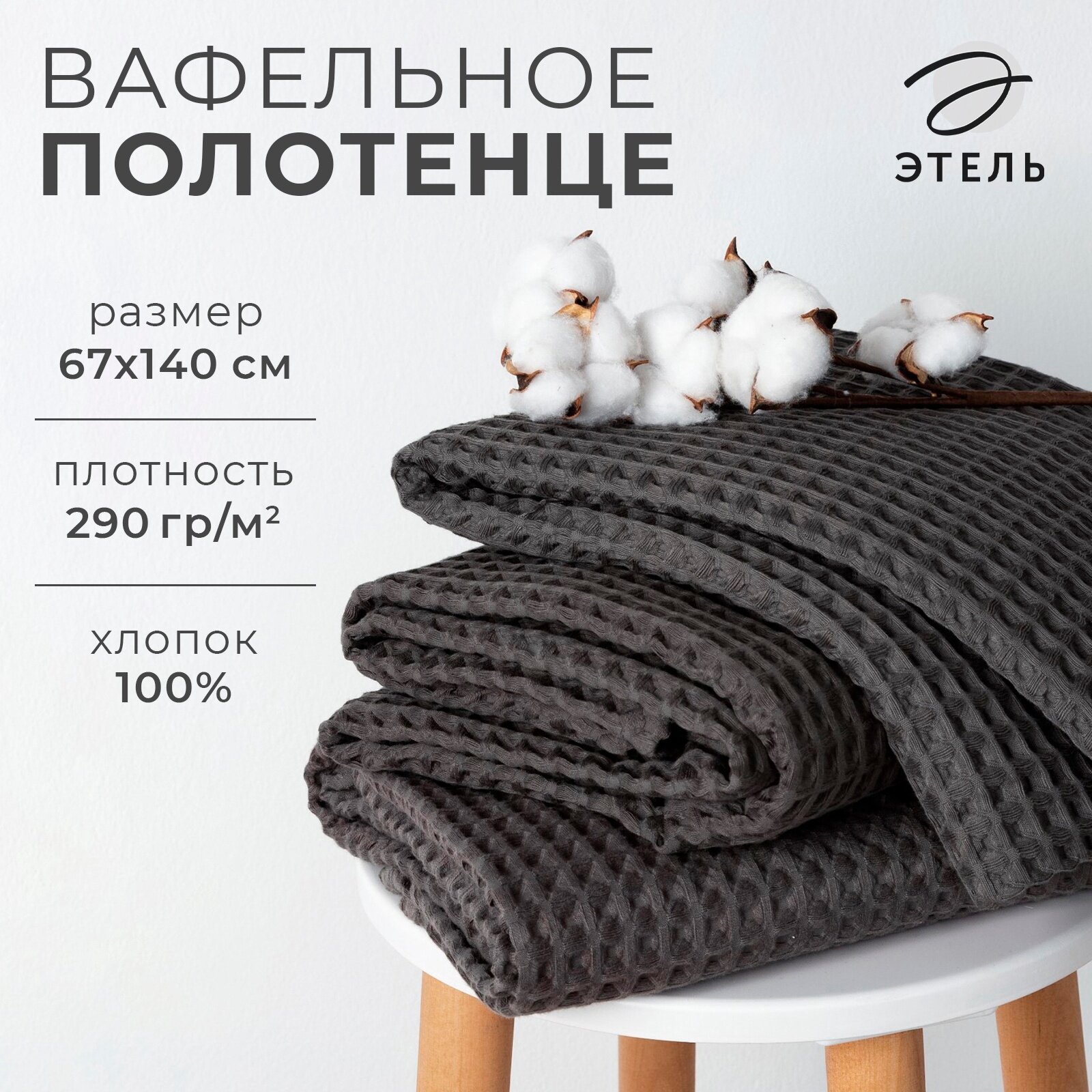 Полотенце вафельное банное Этель «Boho« 67х140 см, цвет тёмно-серый, 100% хл, 290 гр/м2