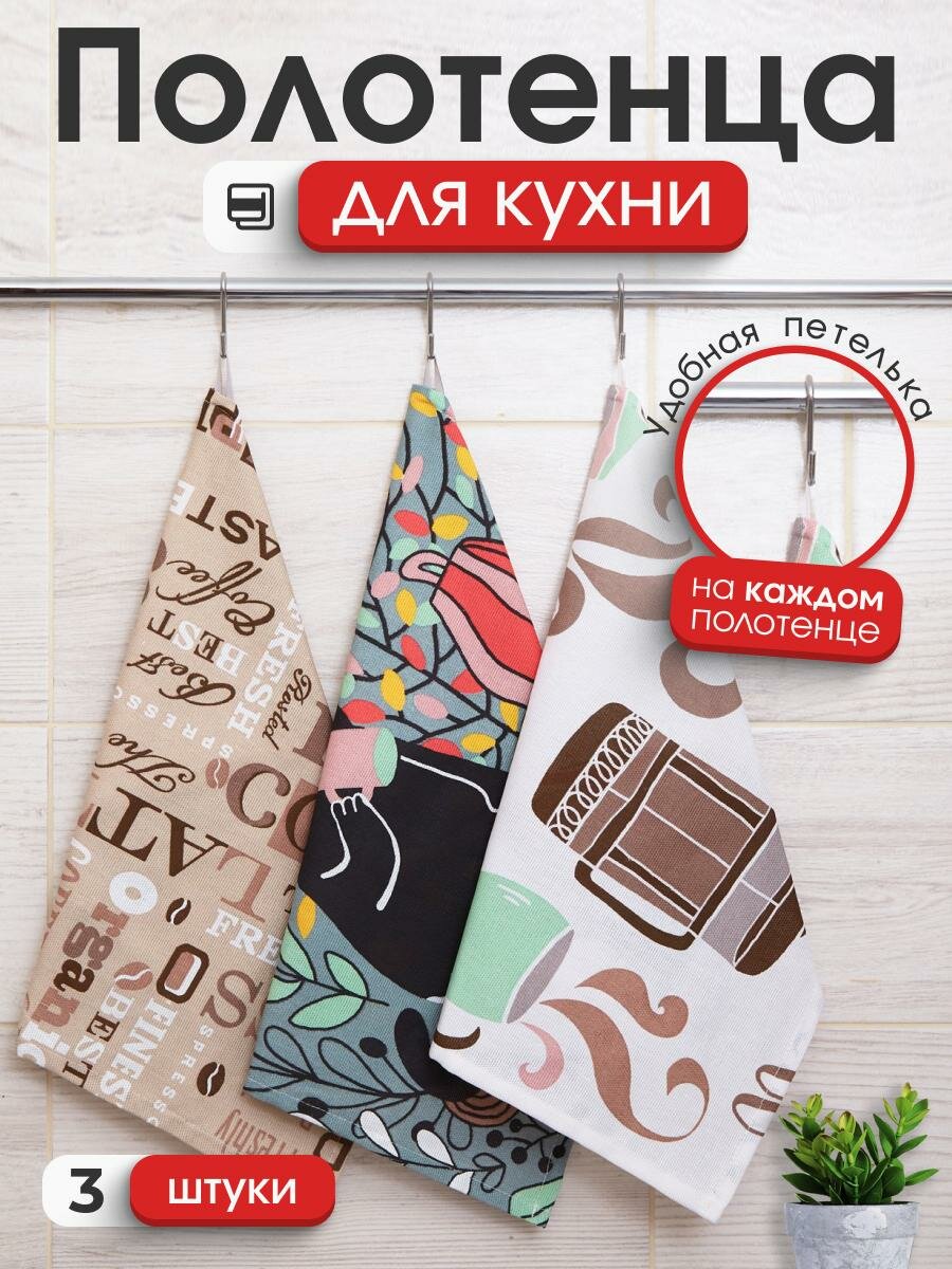 Купить Набор кухонных полотенец/рогожка/с петелькой/полотенце кухонное/салфетка/45х60/3 штуки/Горячее какао