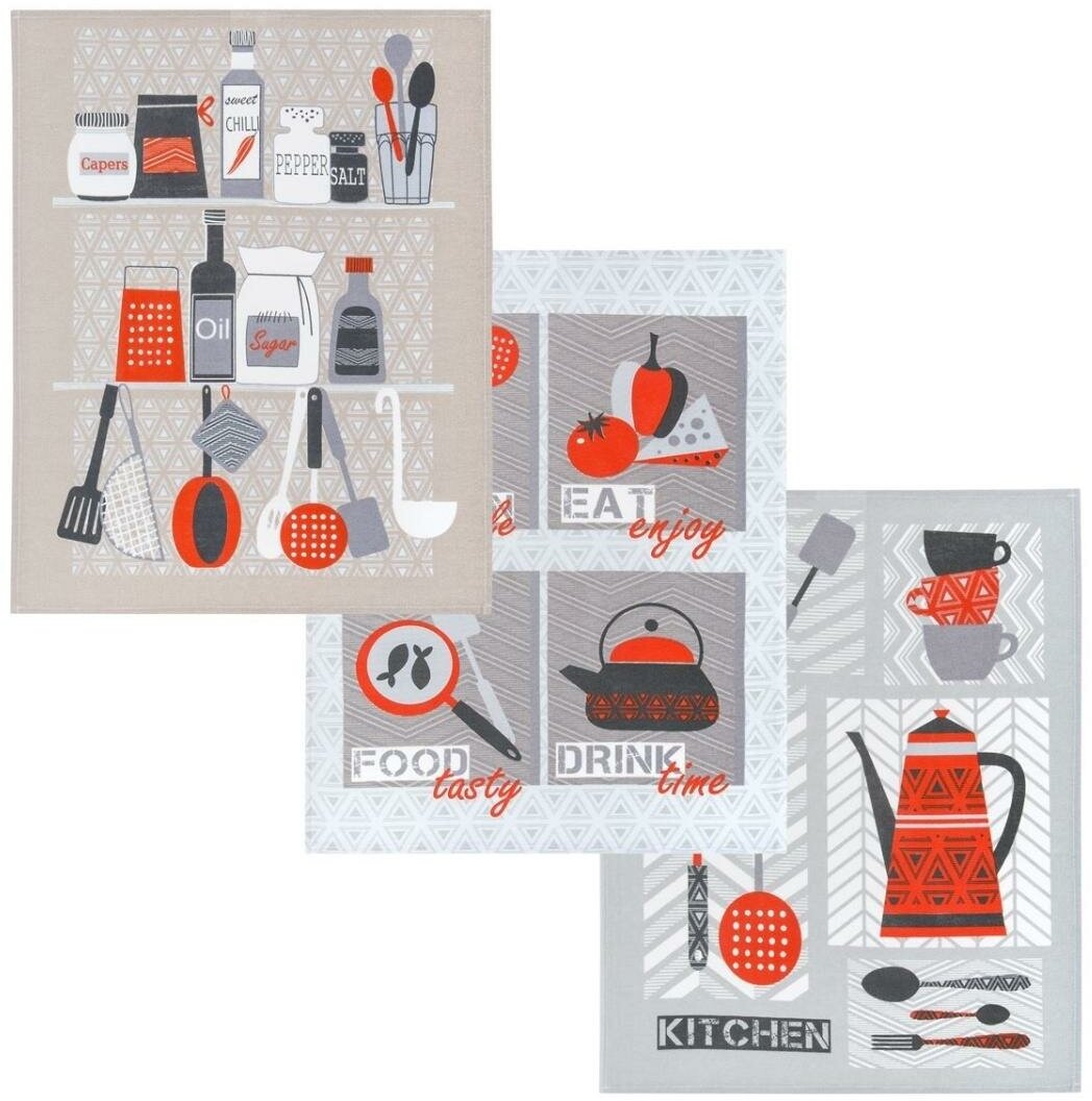 Набор кухонных полотенец/рогожка/с петелькой/полотенце кухонное/салфетка/45х60/3 штуки/Фастфуд