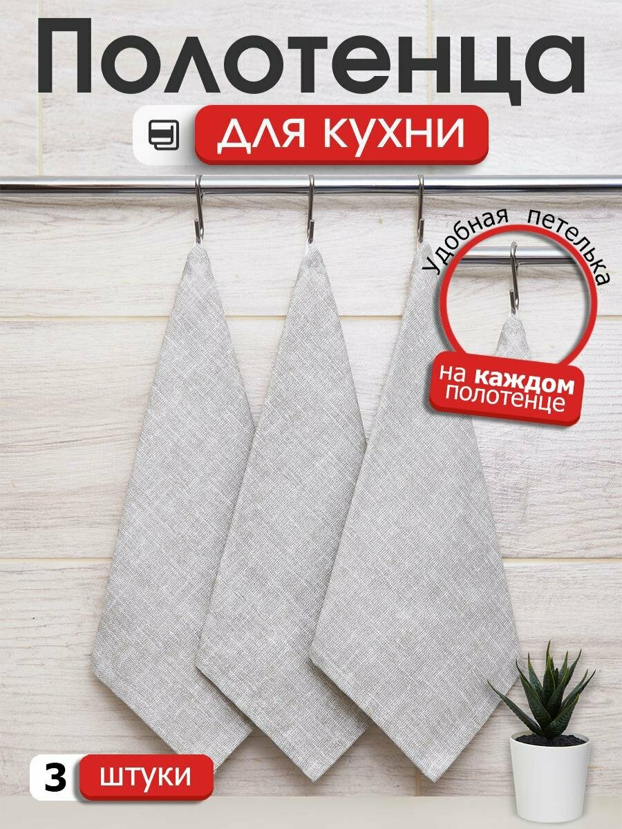 Набор кухонных полотенец/рогожка/с петелькой/полотенце кухонное/салфетка/45х60/3 штуки/Посол обеда