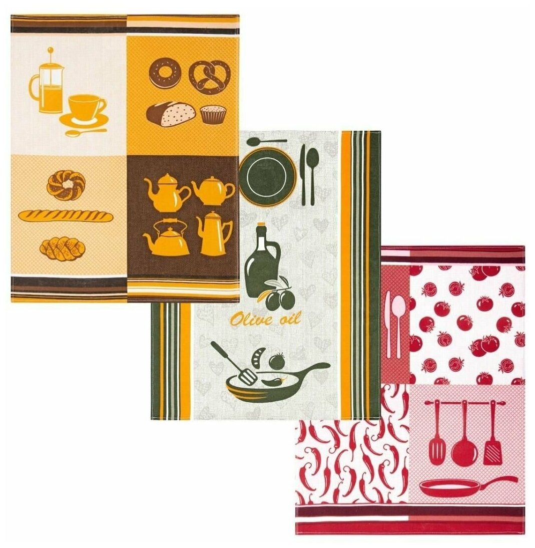Набор кухонных полотенец/рогожка/с петелькой/полотенце кухонное/салфетка/45х60/3 штуки/Посол обеда