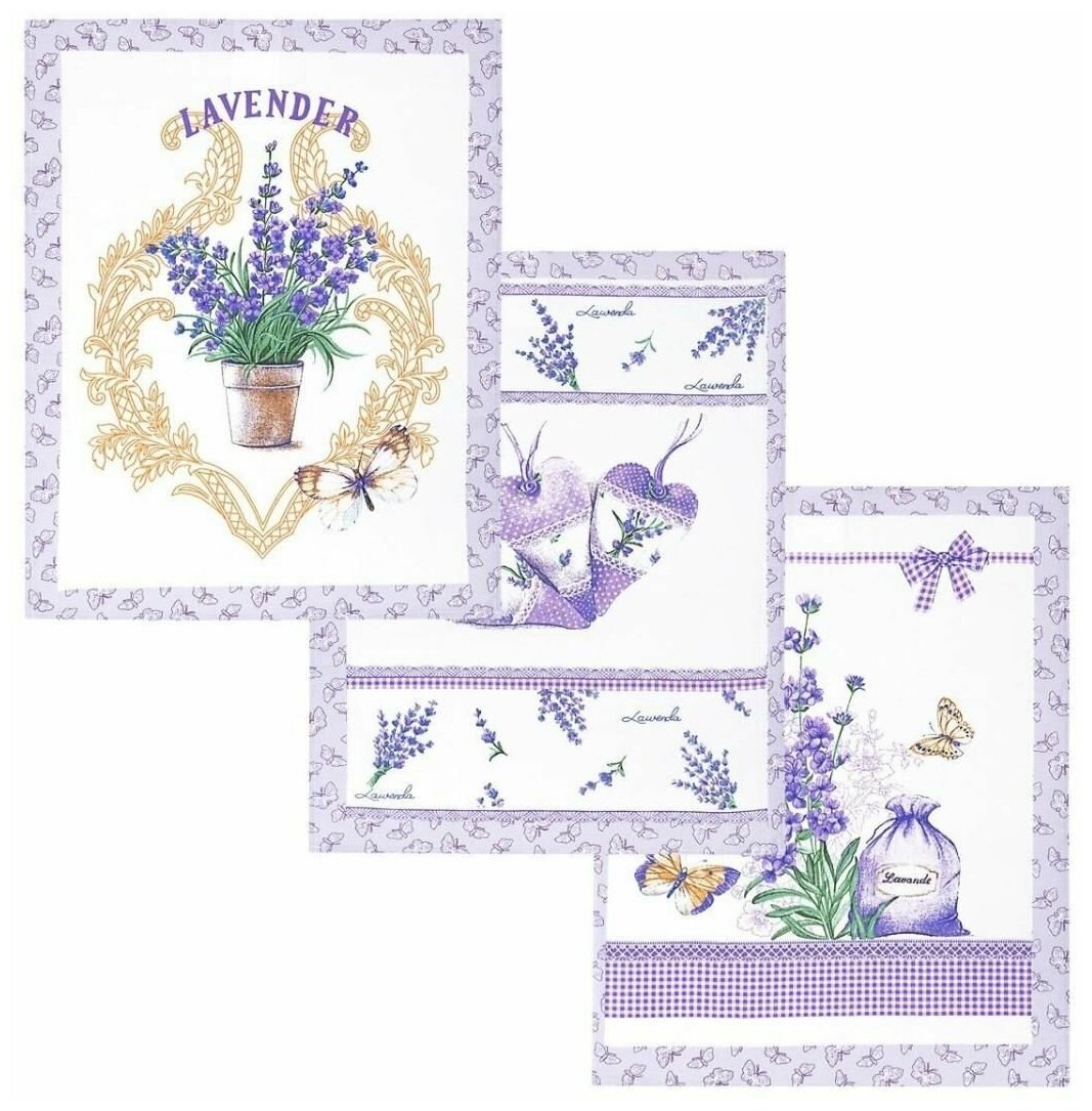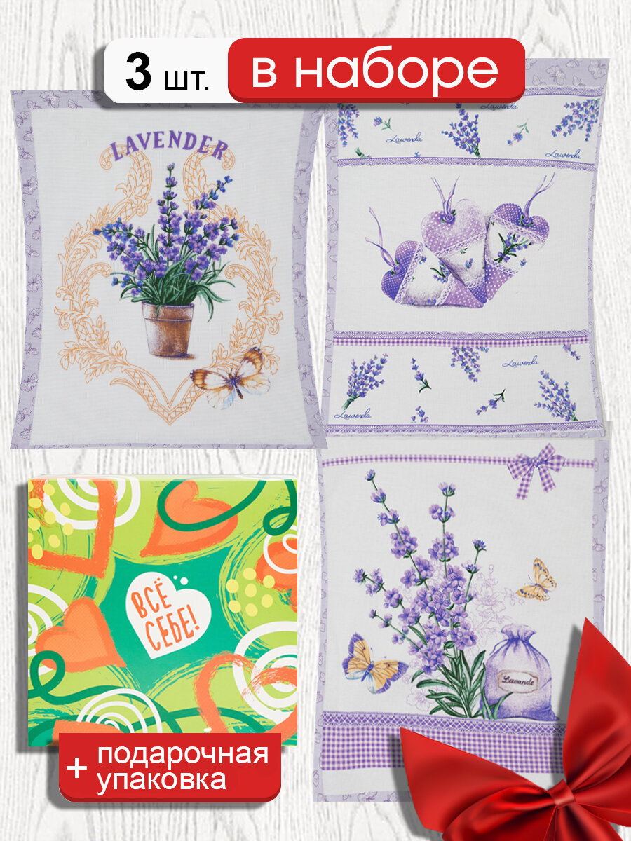 Набор кухонных полотенец/рогожка/с петелькой/полотенце кухонное/салфетка/45х60/3 штуки/Благоухание