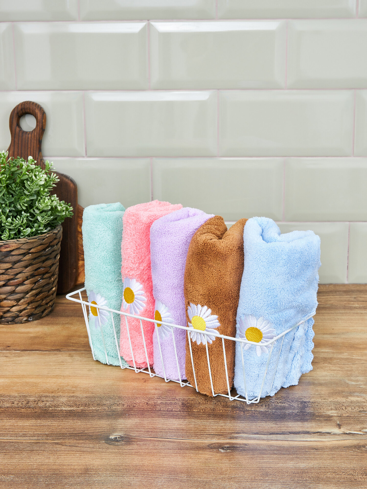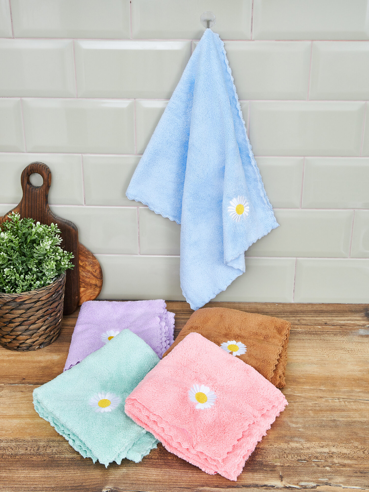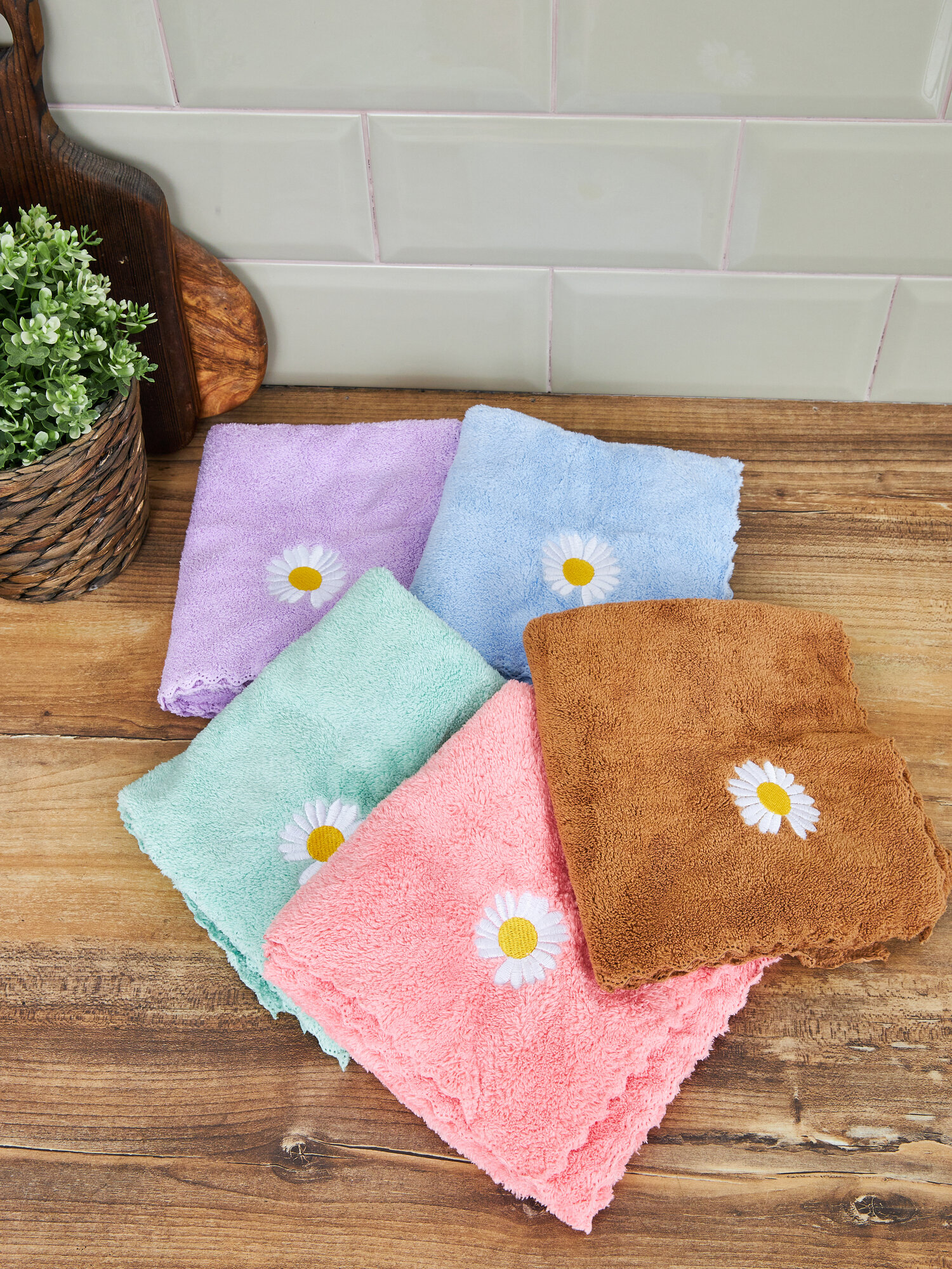 Купить Набор кухонных полотенец MAOMIKO, 5 штук, микрофибра, 35х75 см, серый с вышивкой ромашки