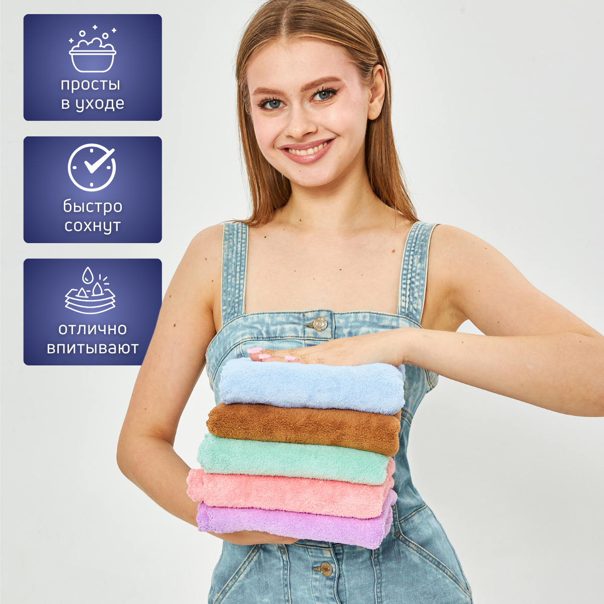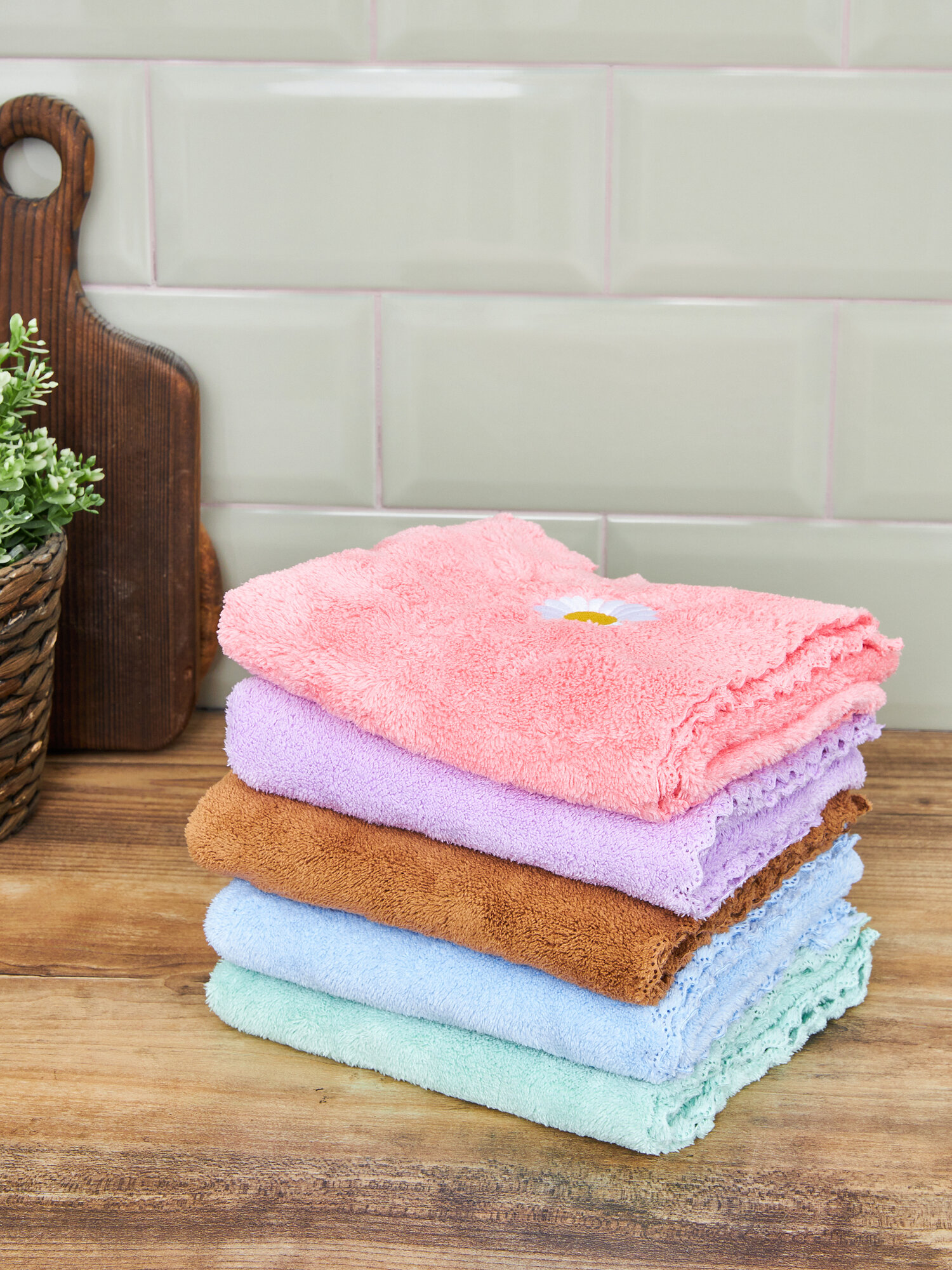 Набор кухонных полотенец MAOMIKO, 5 штук, микрофибра, 35х75 см, цветные, волнистые края