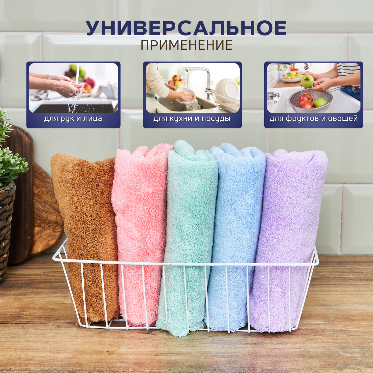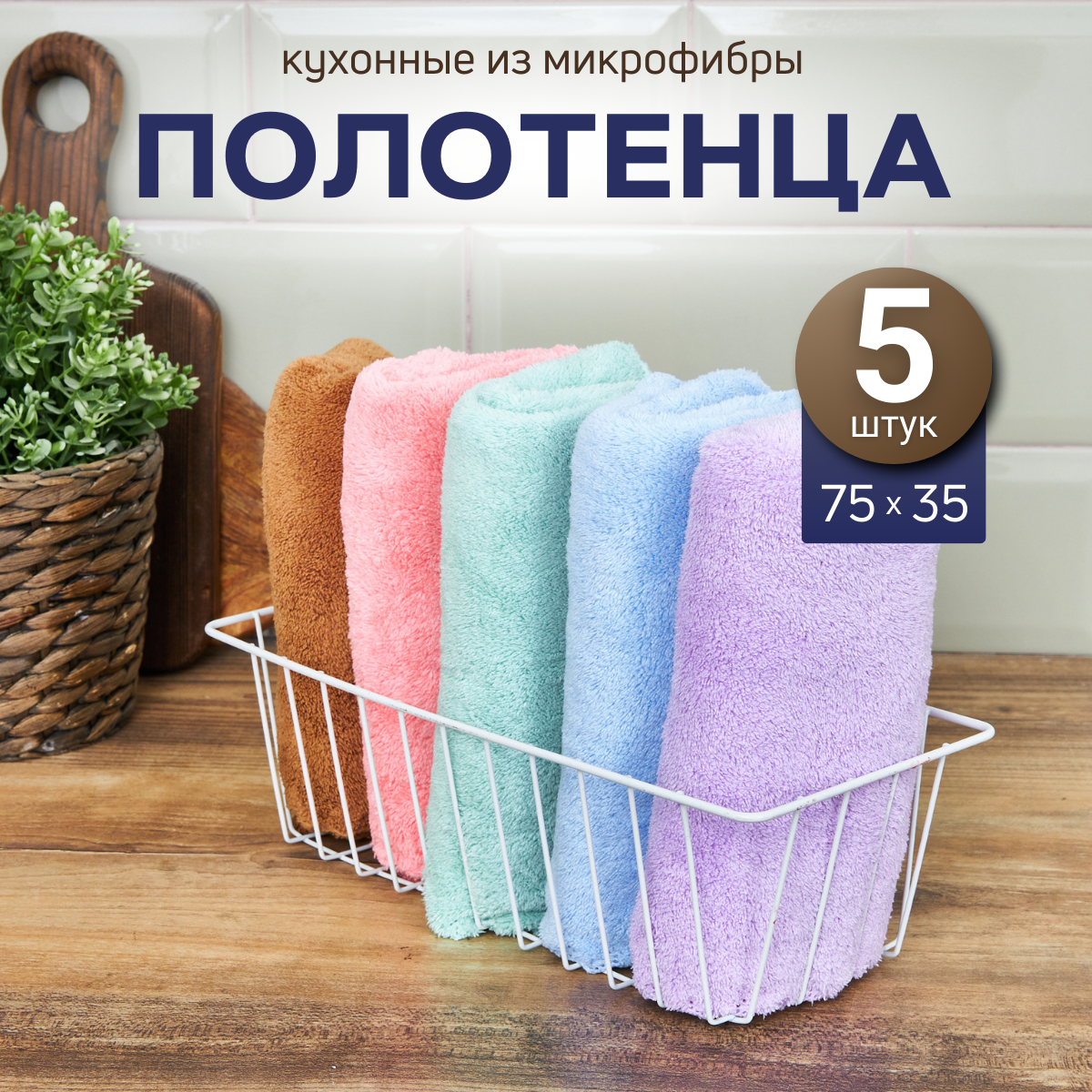 Набор кухонных полотенец MAOMIKO, 5 штук, микрофибра, 35х75 см, цветные, волнистые края интересное: