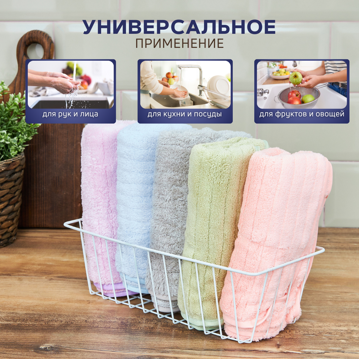 Купить Набор кухонных полотенец MAOMIKO, 5 штук, микрофибра, 35х75 см, цветные