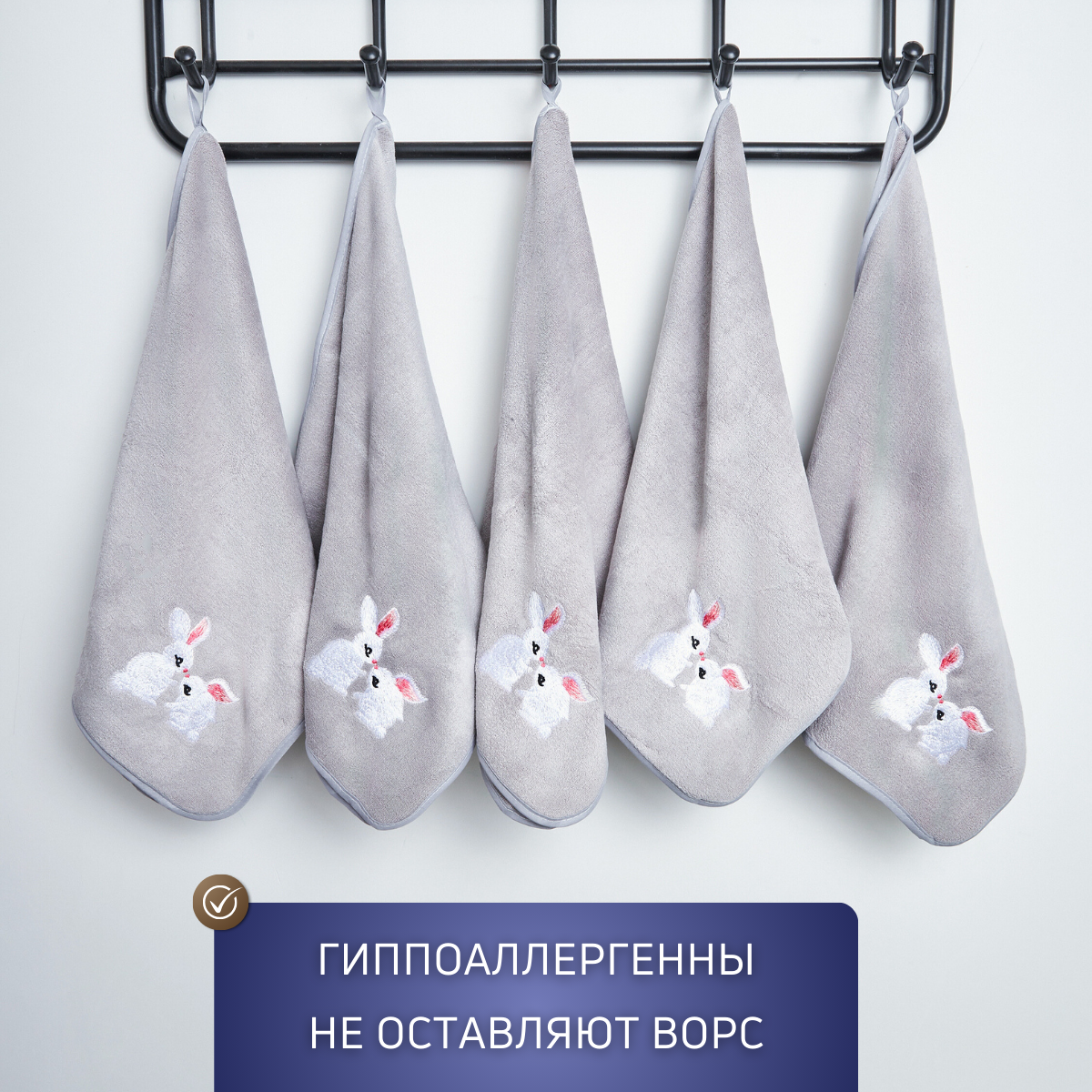 Набор кухонных полотенец MAOMIKO, 5 штук, микрофибра, 35х75 см, серый с вышивкой зайцы интересное: