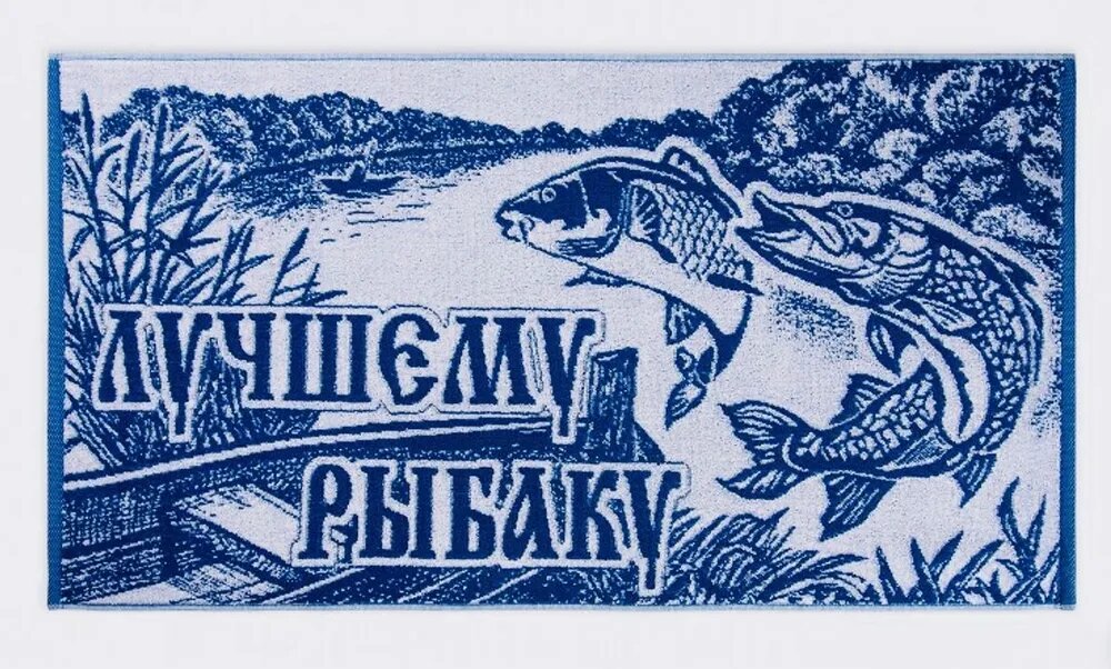 Полотенце махровое хорошо впитывает влагу банное Лучшему рыбаку 50х90 см, синий с белым, Россия интересное: