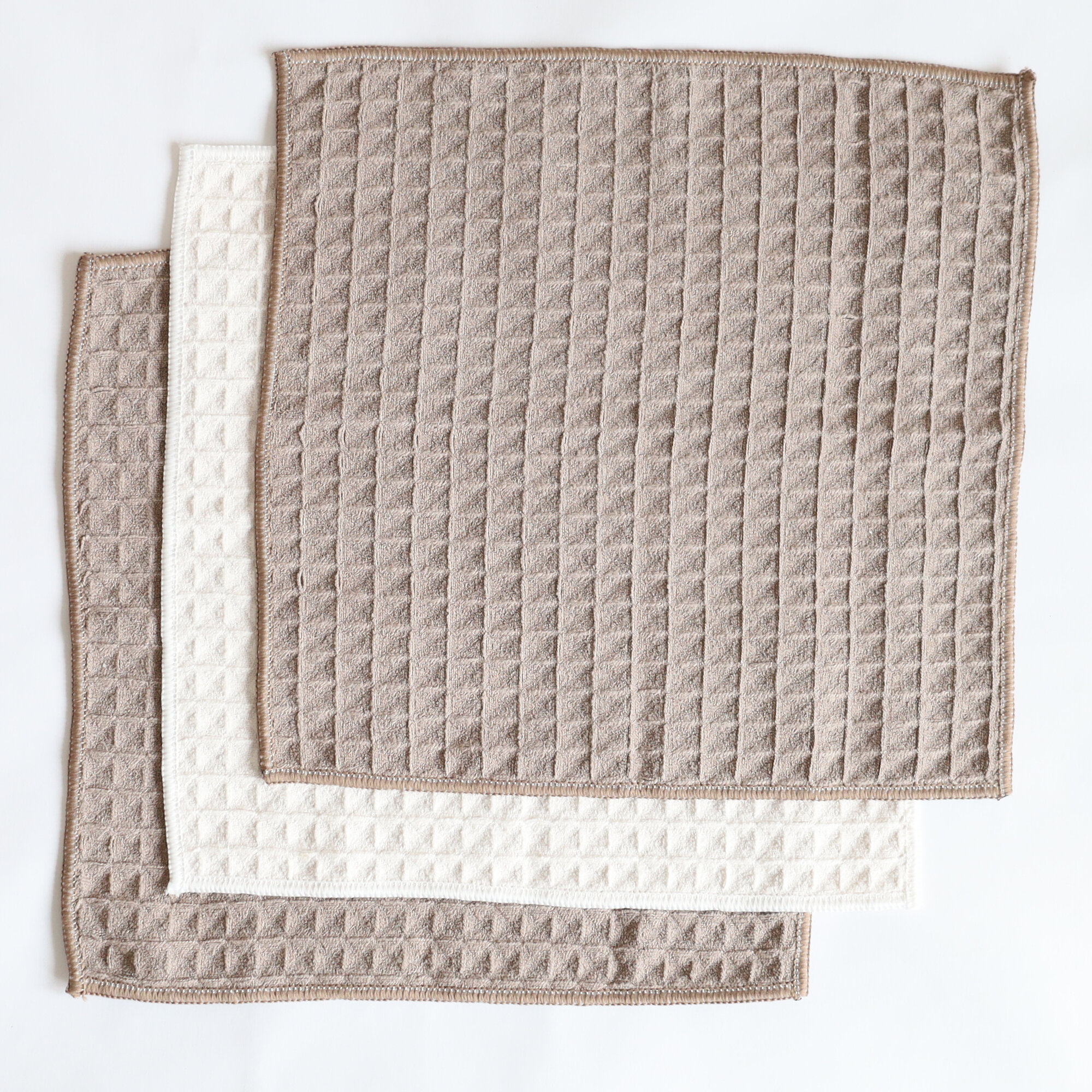 Купить Набор двухцветных вафельных полотенец хлопок 30x30 3шт, белое, коричневое