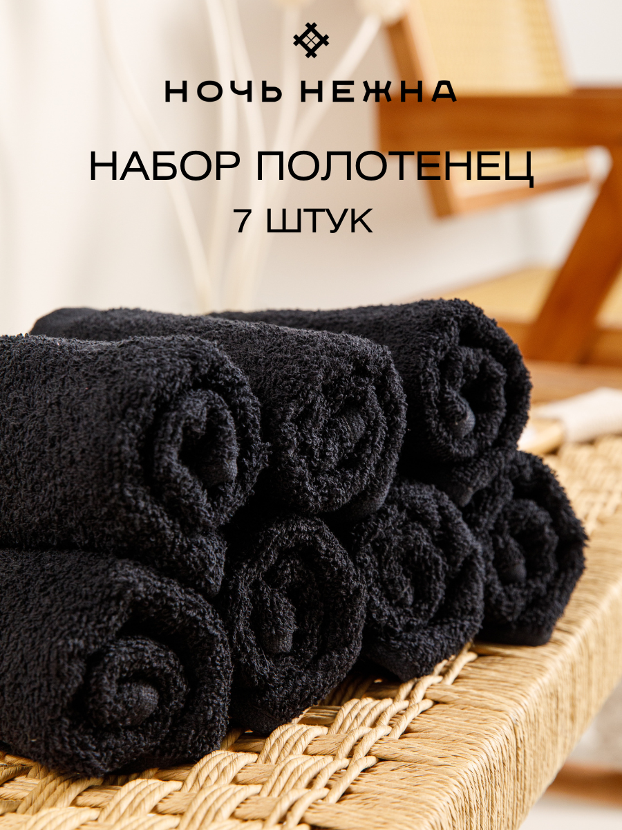 Набор полотенец махровых Ночь Нежна цвет Графит 30х60 Кол-во 7 шт, махровое полотенце для рук и лица в ванную и в кухню