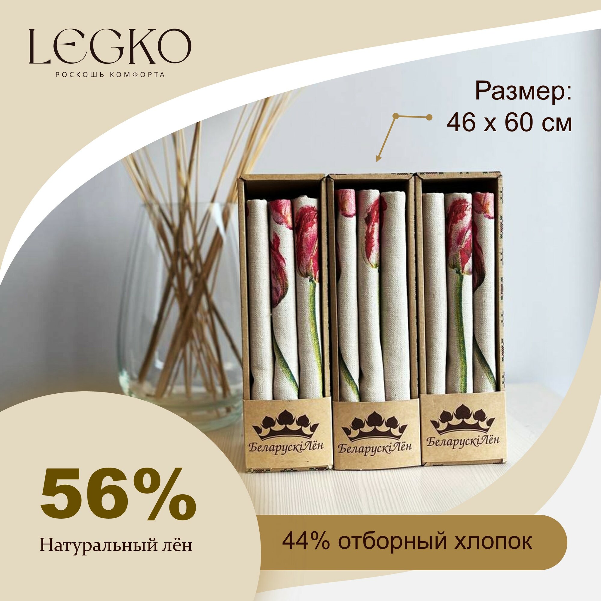 Набор кухонных льняных полотенец в подарочной коробке Фрэнсис, 46х60, 56 % льна интересное: