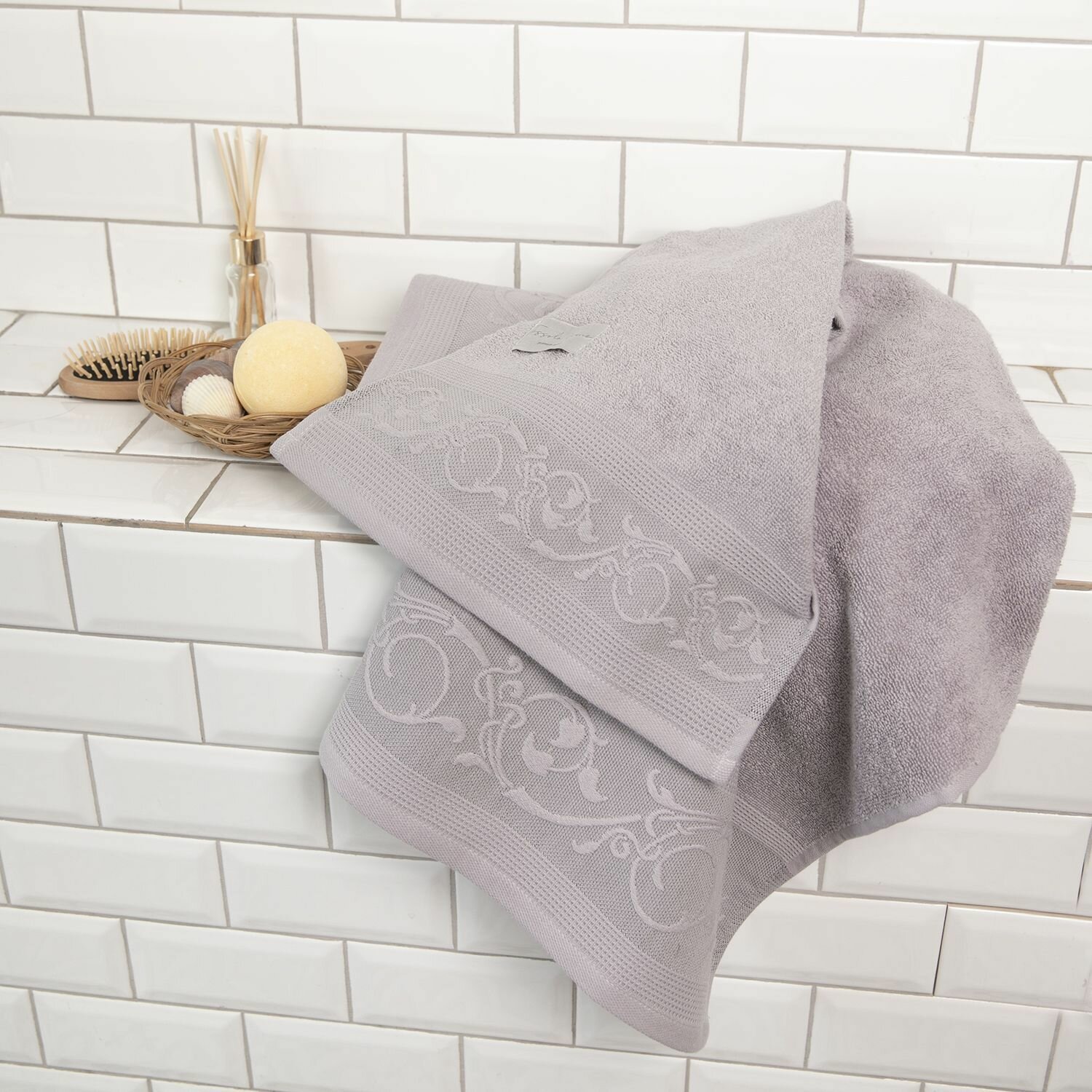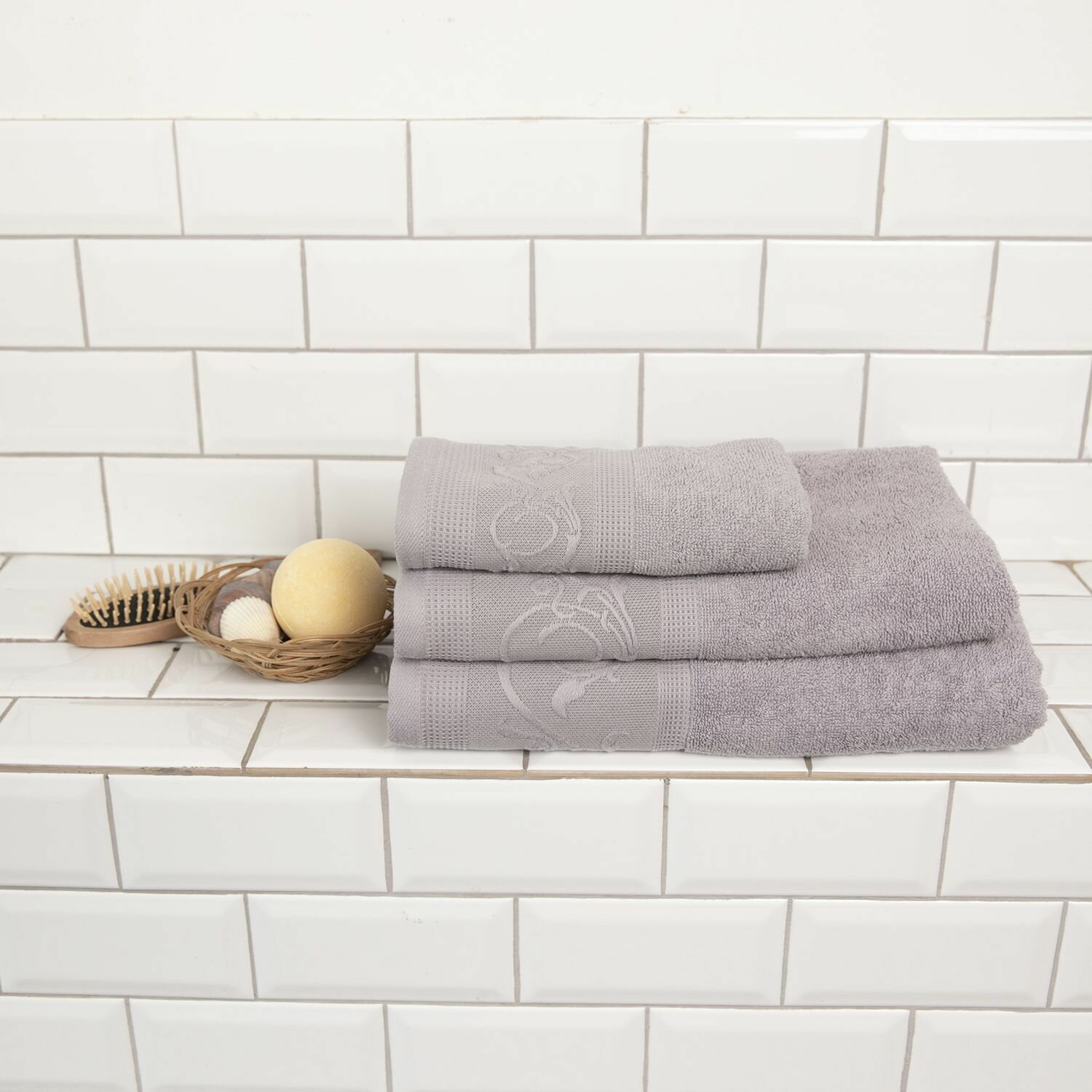 Полотенеце банное махровое набор из 3 шт. 30х60; 50х90; 70х130 "райхон" лавандово-серый
