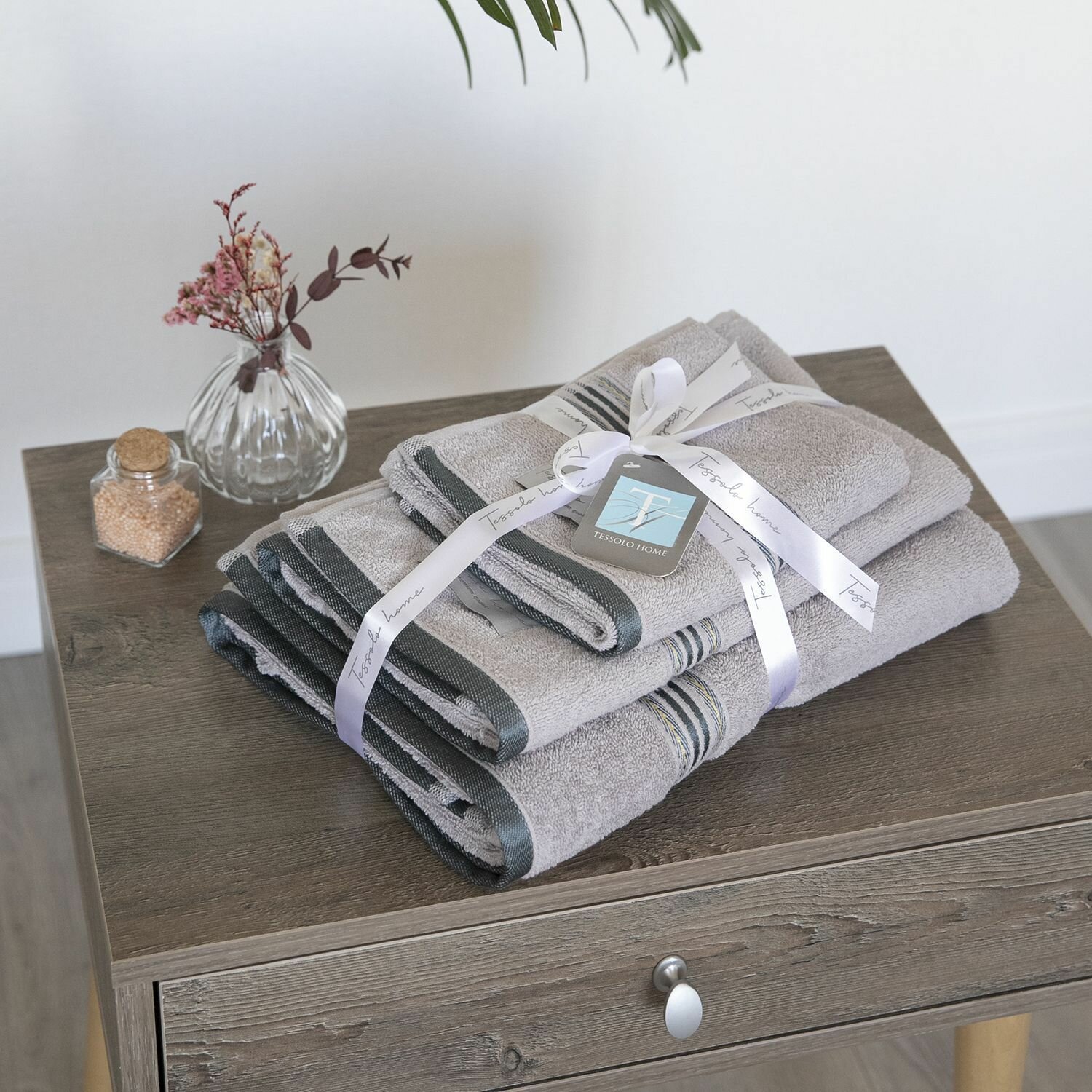 Полотенеце банное махровое набор из 3 шт. 30х60; 50х90; 70х130, светло-серый "райхон"