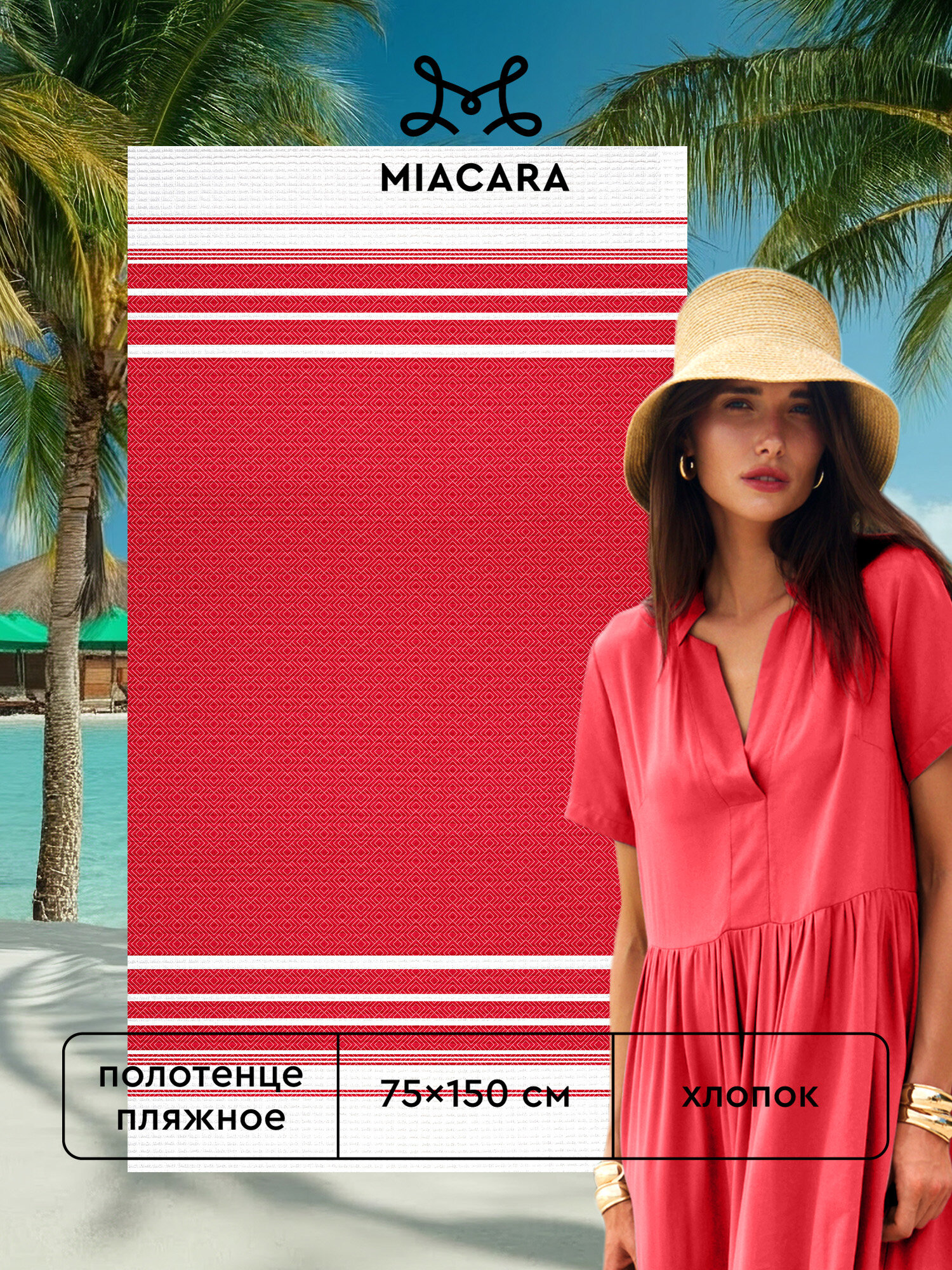 Купить Полотенце пляжное вафельное 75х150 "Mia Cara" рис 30730-1 Peshtemal красный