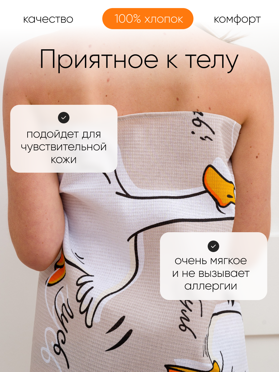 Полотенце банное вафельное 150х75 см Павлина Гусь обнимусь бежевый 100% хлопок интересное: