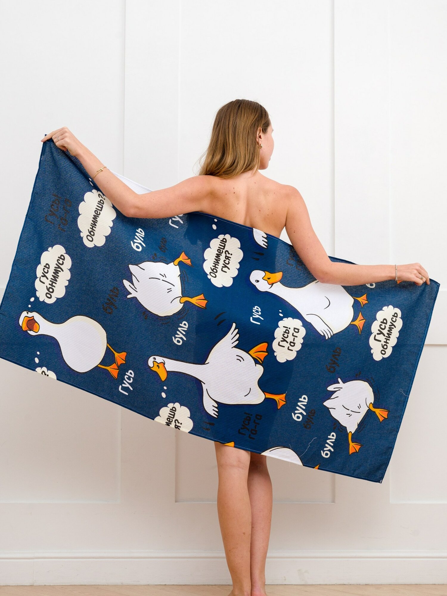 Полотенце банное вафельное 150х75 см Павлина Гусь обнимусь синий 100% хлопок интересное: