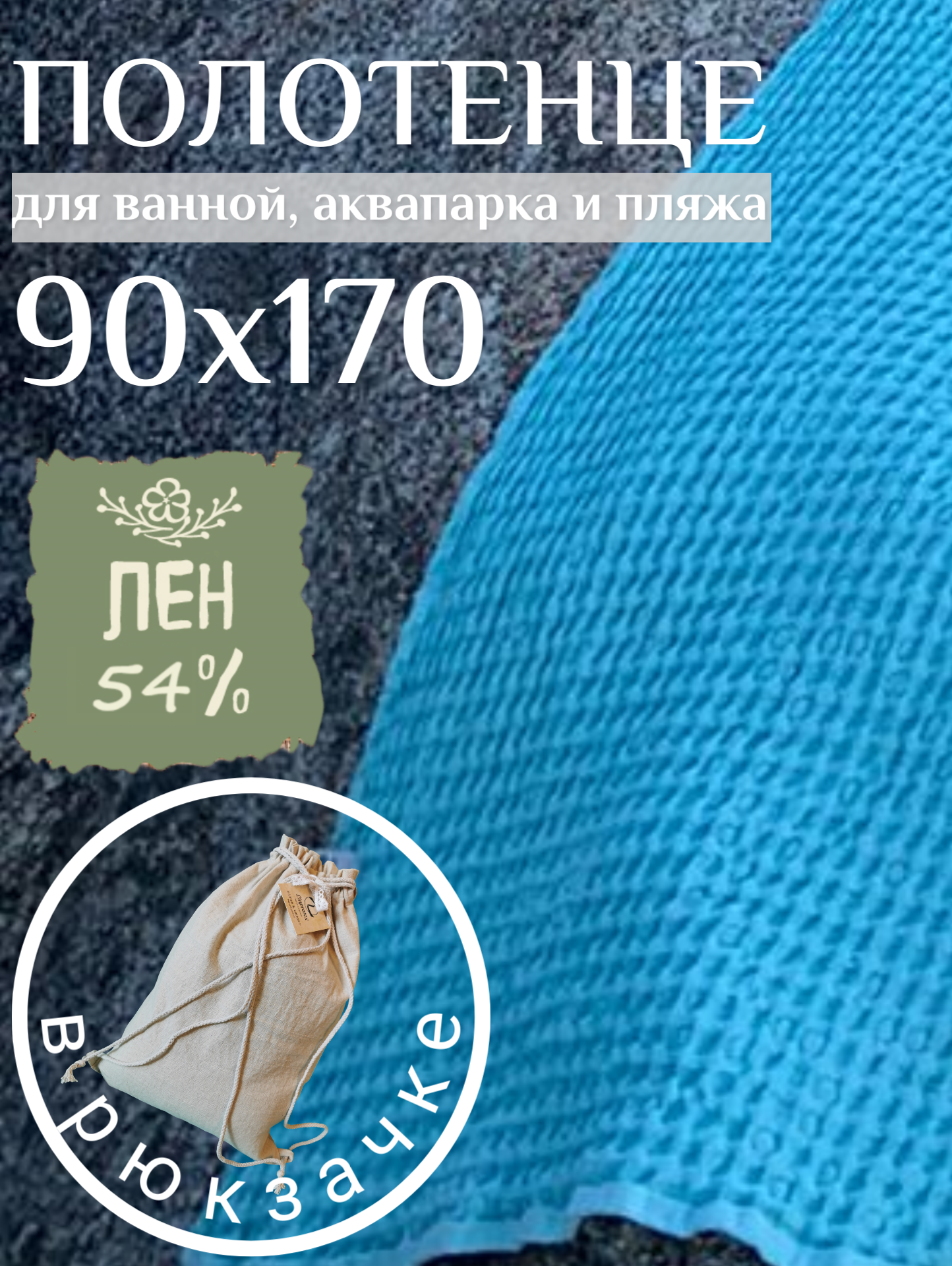 Пляжное полотенце Linprotex льняное вафельное Зефир большое 90х170, бирюзовое интересное:
