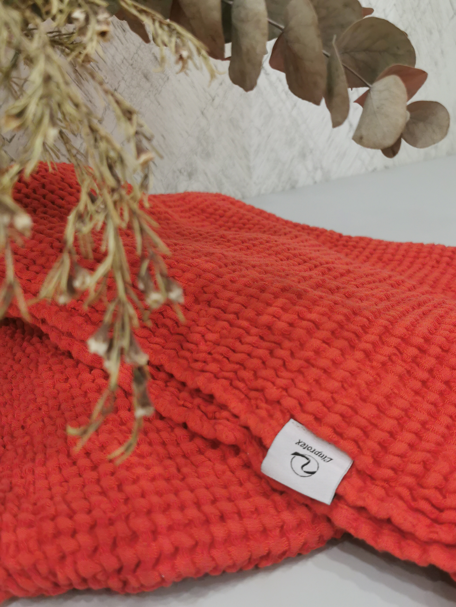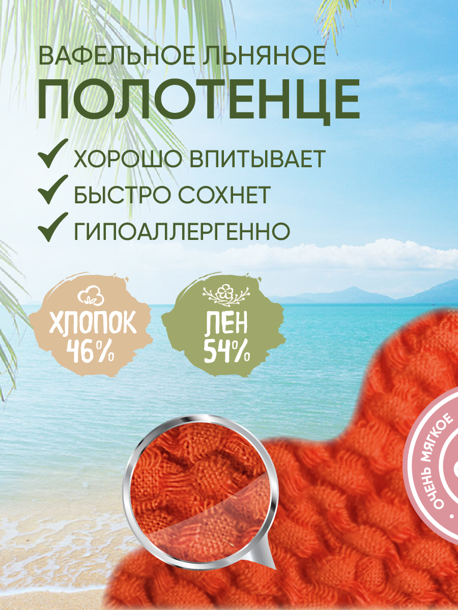 Полотенце банное Linprotex льняное вафельное Зефир большое 90х170, терракотовое интересное: