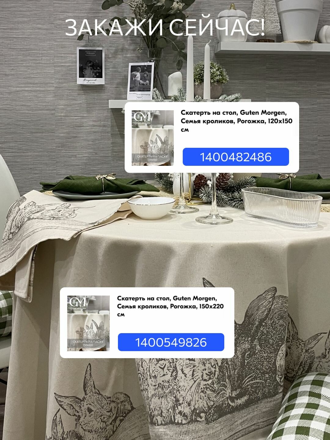 СохранитьСкатерть на стол, Guten Morgen, Семья кроликов, Рогожка, 120х150 см интересное: