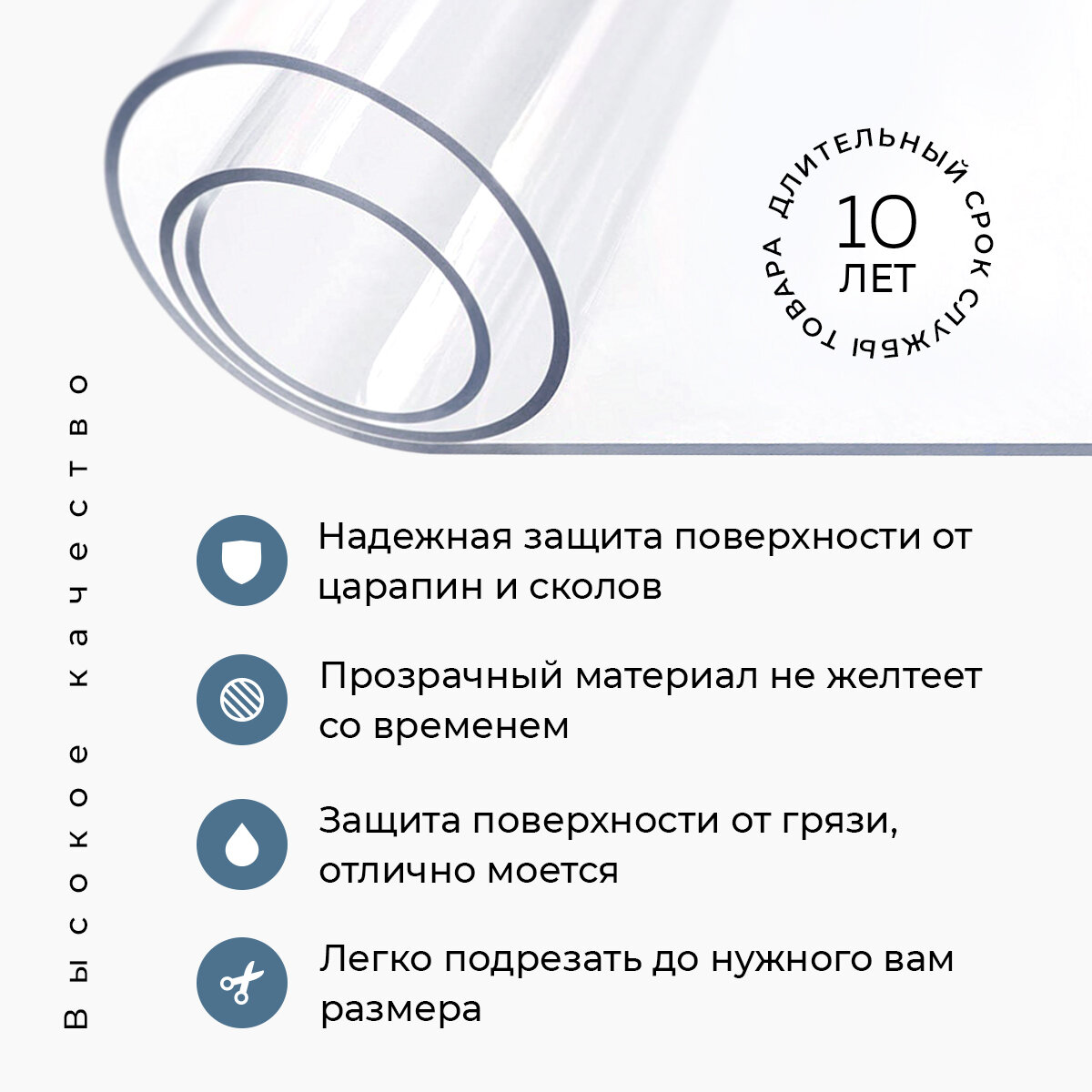 Скатерть гибкое жидкое стекло на стол прозрачное 120х100 см, 100х120 см, толщина 0,8 мм.