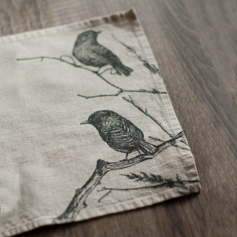 Купить Набор сервировочных салфеток с принтом "Птицы", 2 штуки, 30x40 см, умягченный лен