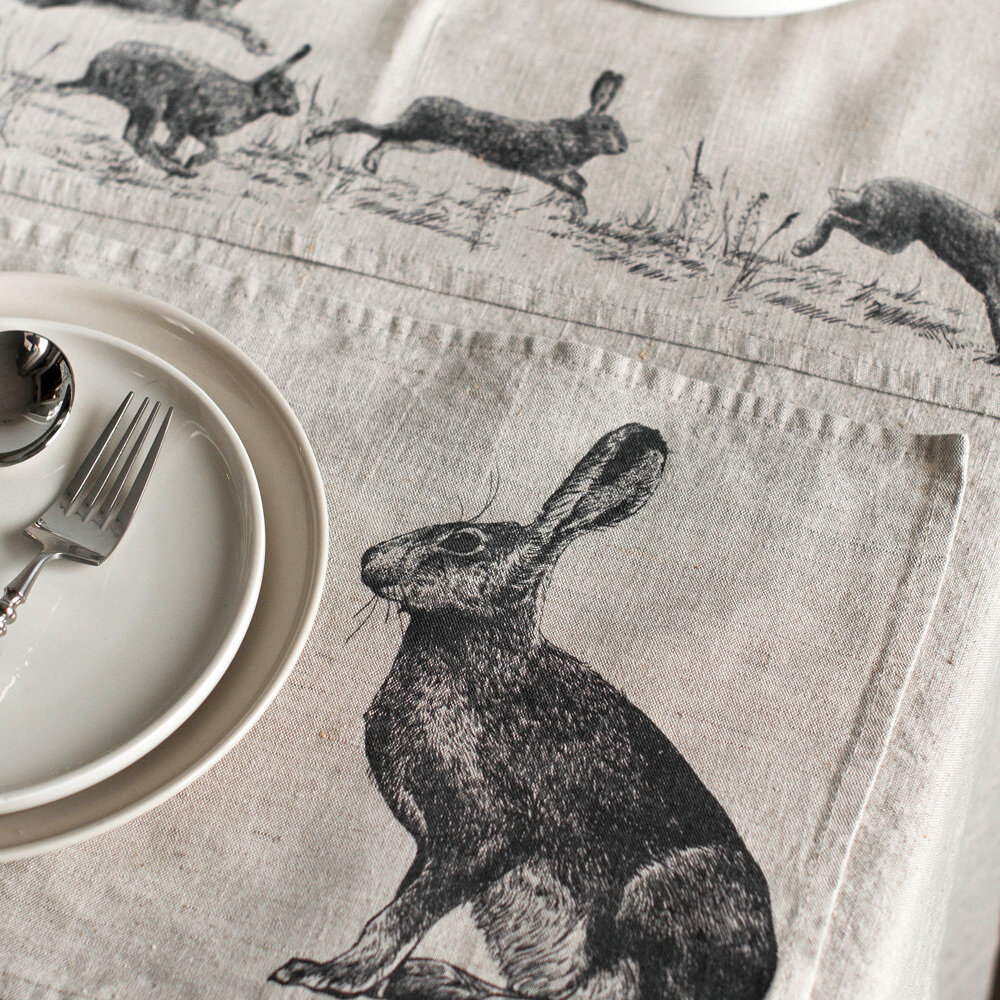 Купить Набор сервировочных салфеток с принтом "Заяц", 2 штуки, 30x40 см, умягченный лен