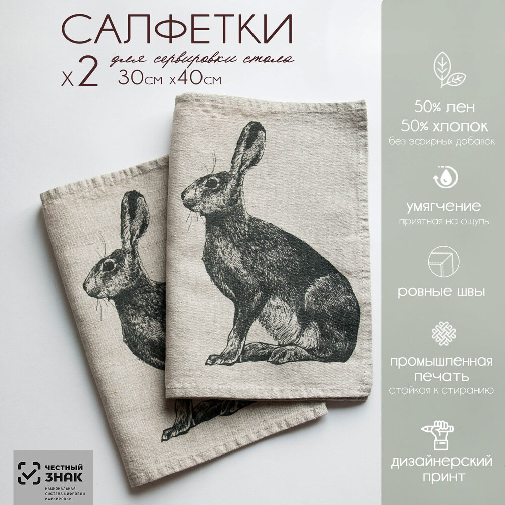Набор сервировочных салфеток с принтом "Заяц", 2 штуки, 30x40 см, умягченный лен интересное: