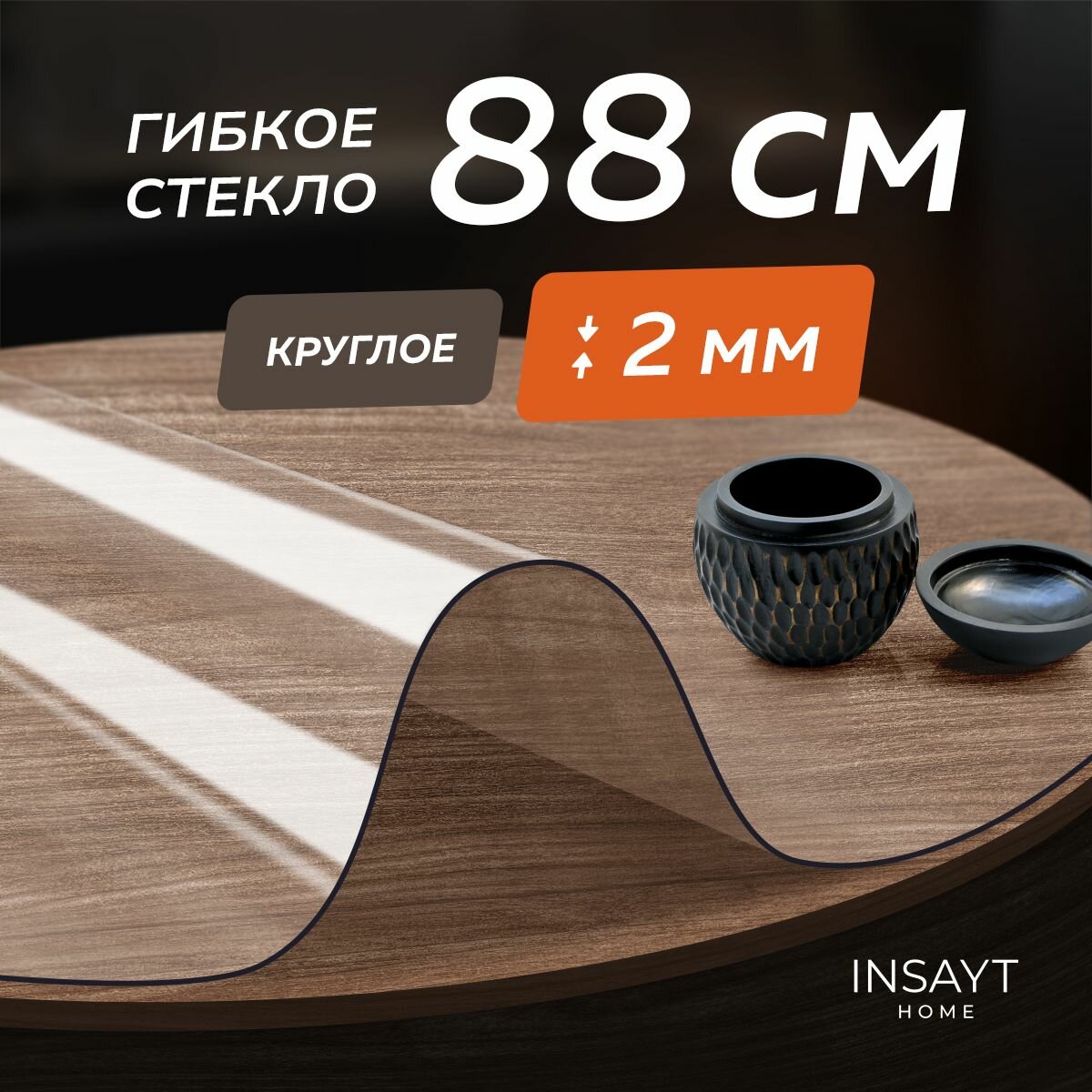 СохранитьГибкое жидкое стекло на стол круглое прозрачное 88 см, толщина 2 мм интересное: