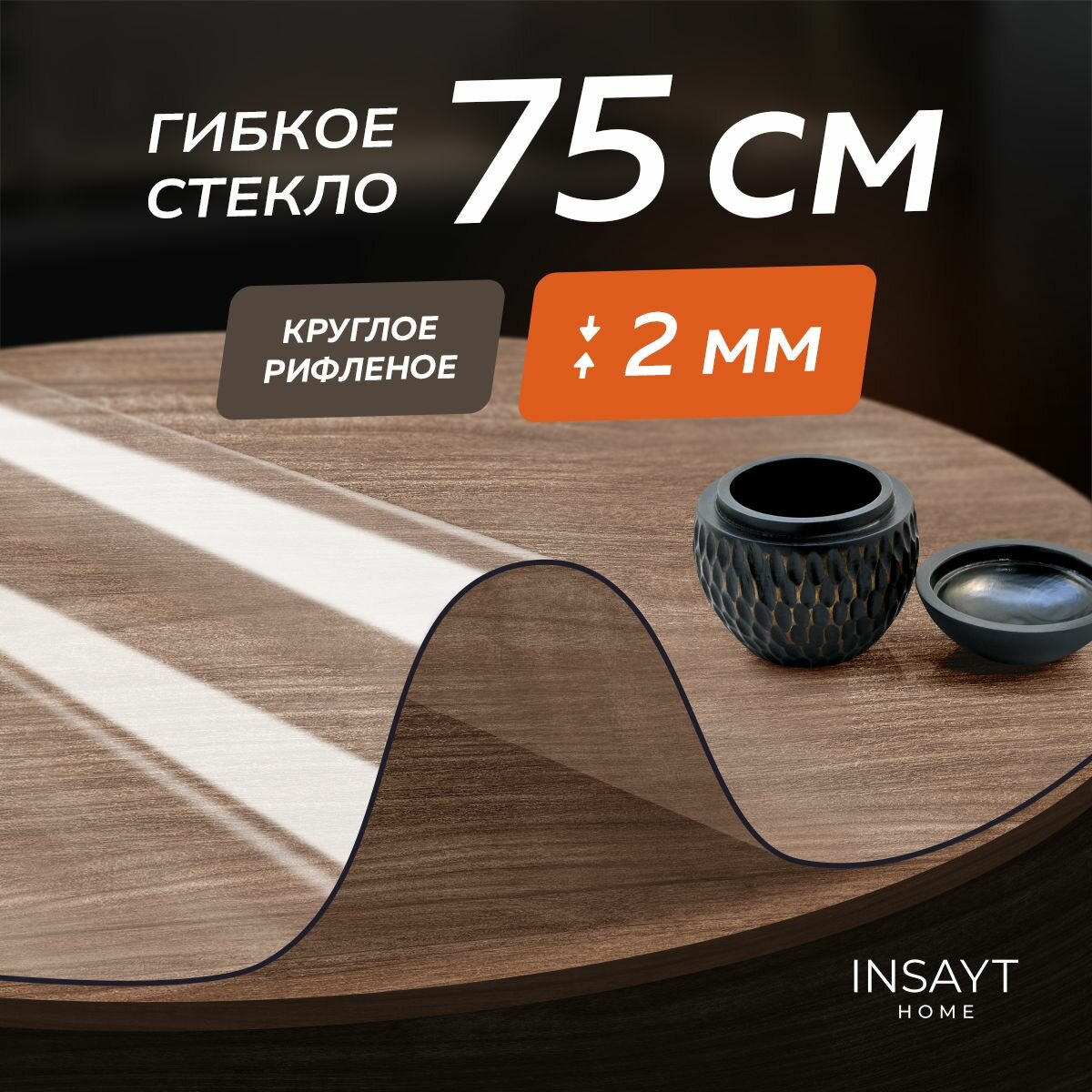Гибкое жидкое стекло на стол рифленое круглое 75 см толщина 1 мм