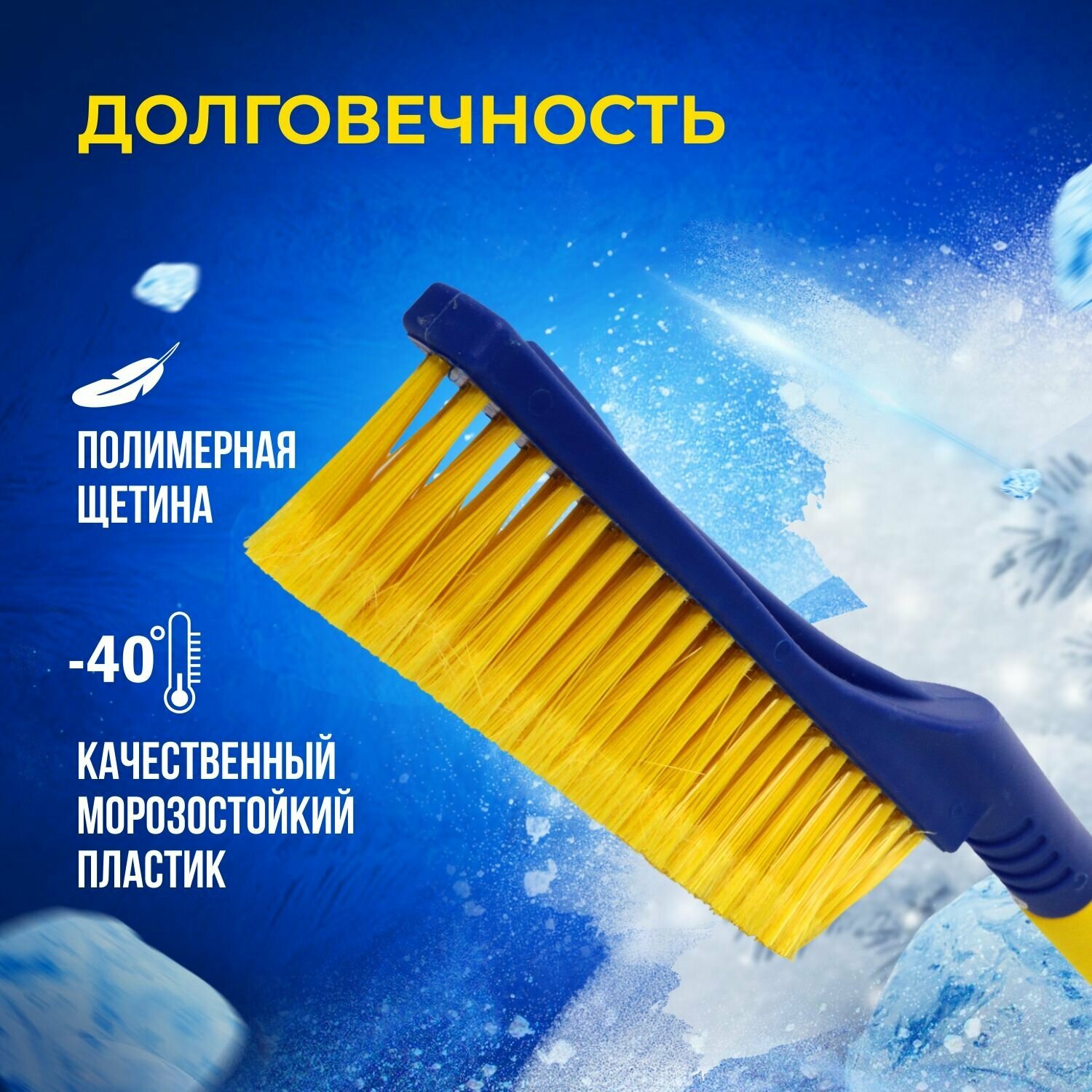 | Плюсы: | Беру в третий раз (опять на лето выложил на даче и опять забыл - ну так у меня бывает) Кончики лохматые, жесткость отличная, прикладываю фото, даже палец побелел, т.е. снег мокрый сметет, справится, желтый утеплитель не прокручивается, скребок сразу расположен правильно, чтобы не царапать машину. |