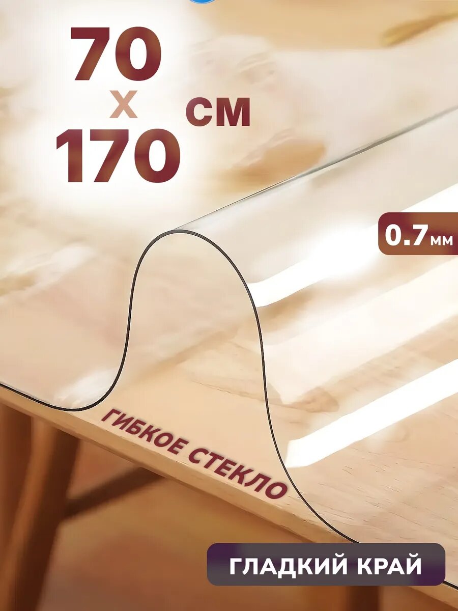 Скатерть прозрачная 140 x 190 см, толщина 0,2 мм (200 мк) / мягкое-гибкое стекло ПВХ