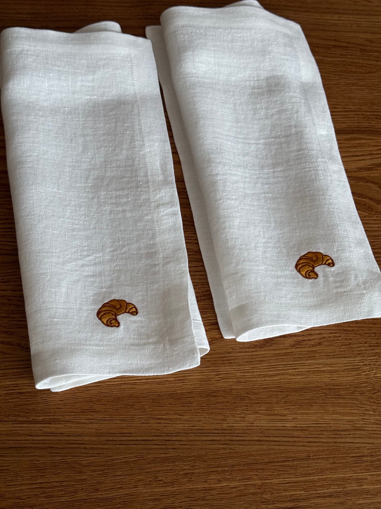 Купить Сервировочная салфетка LenJuLen "Круассан", лен, вышивка, белая, 35 см x 45 см