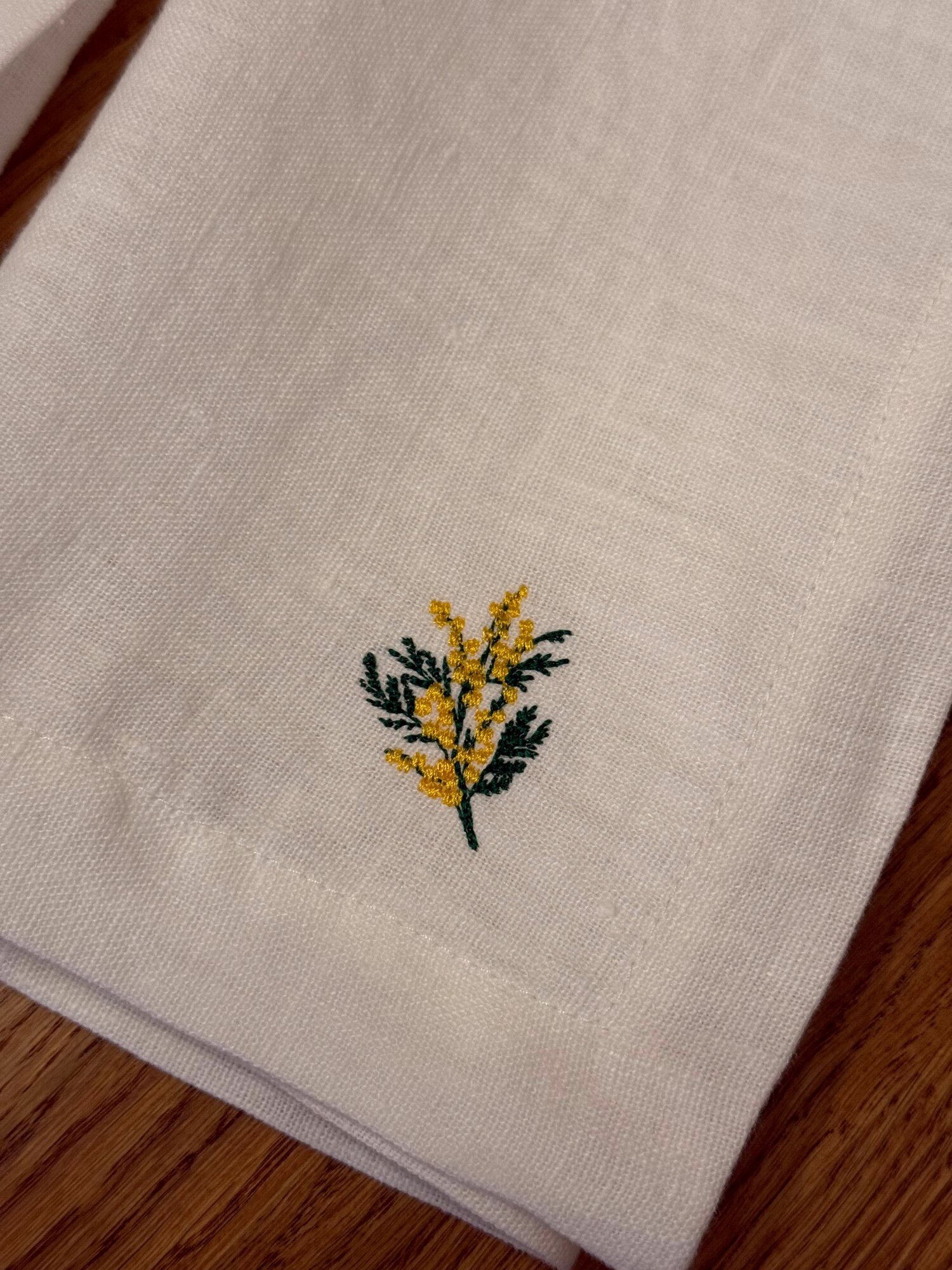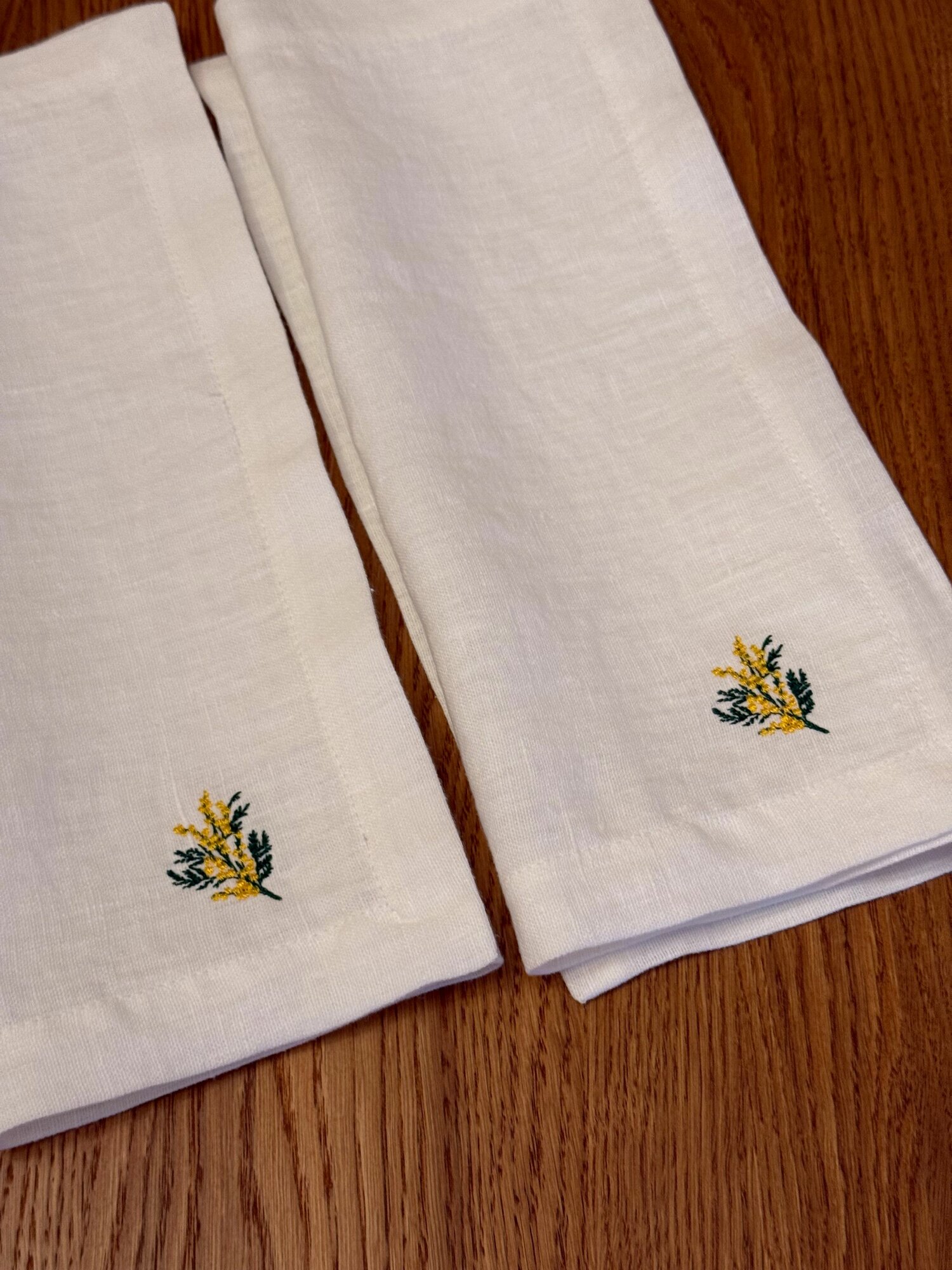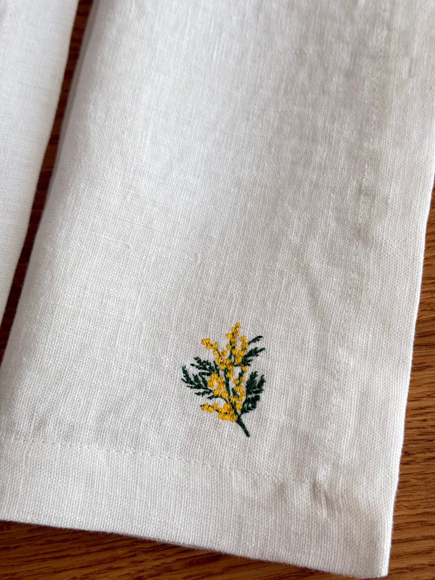 Купить Салфетка льняная с вышивкой Мимоза Плейсмат лен 100% вышивка "Мимоза" 8 Марта
